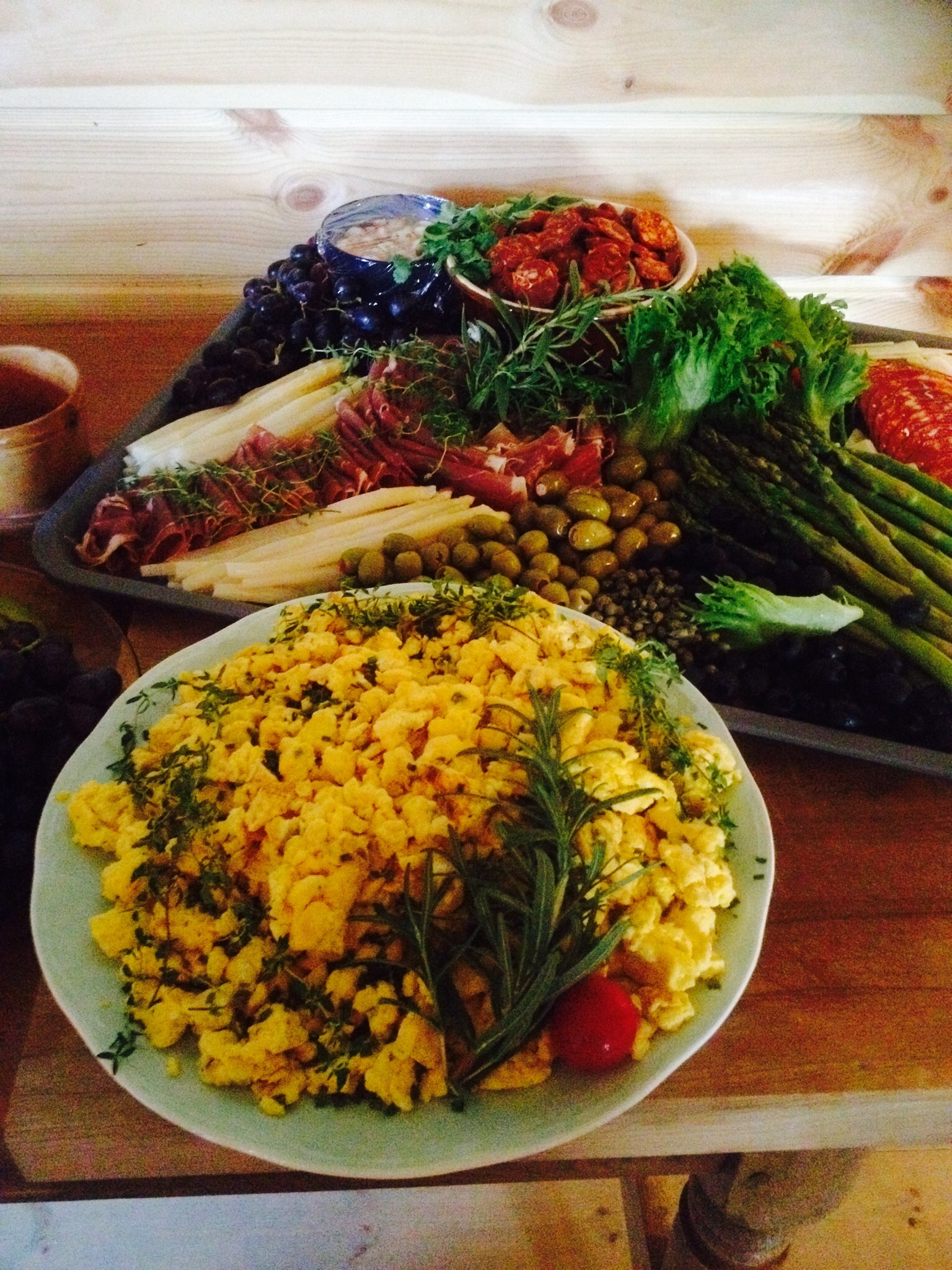 Me fekk servert rømmegraut og spekemat. Det smakte kjempegodt. Inne var det masse levande lys og fyr på grua.