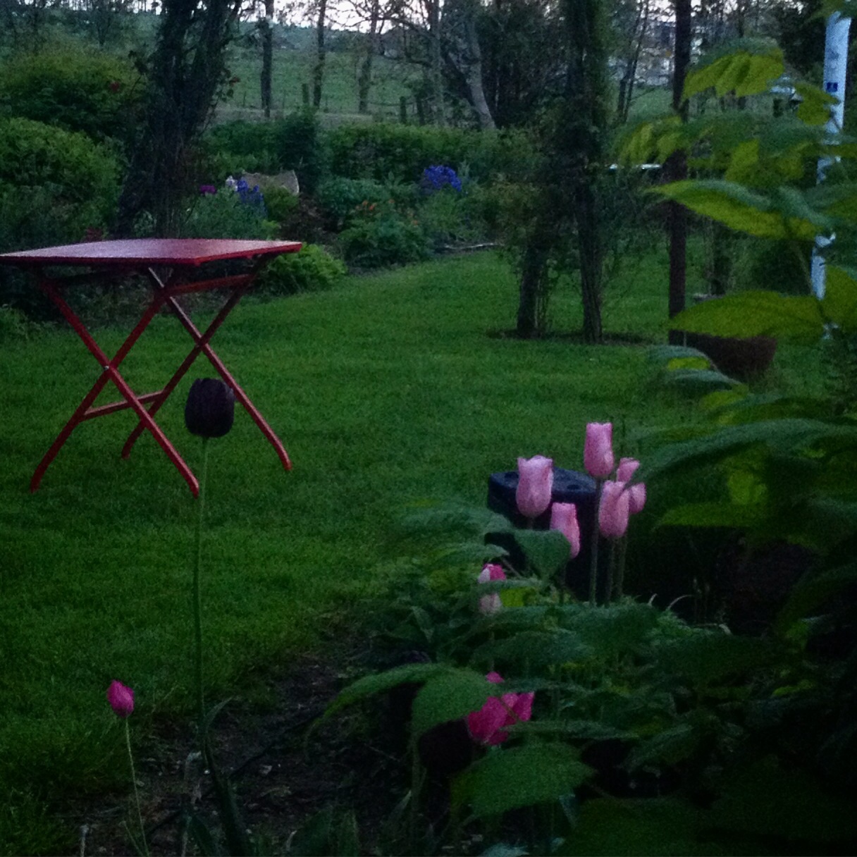 Eg fekk forresten med meg to avslutningar i går. Den første var i hagen til Kari i lag med kollegene i kulturskulen. Der var det og godt å vera. Heilt til slutt tek eg med ei lita stemning der i frå og.