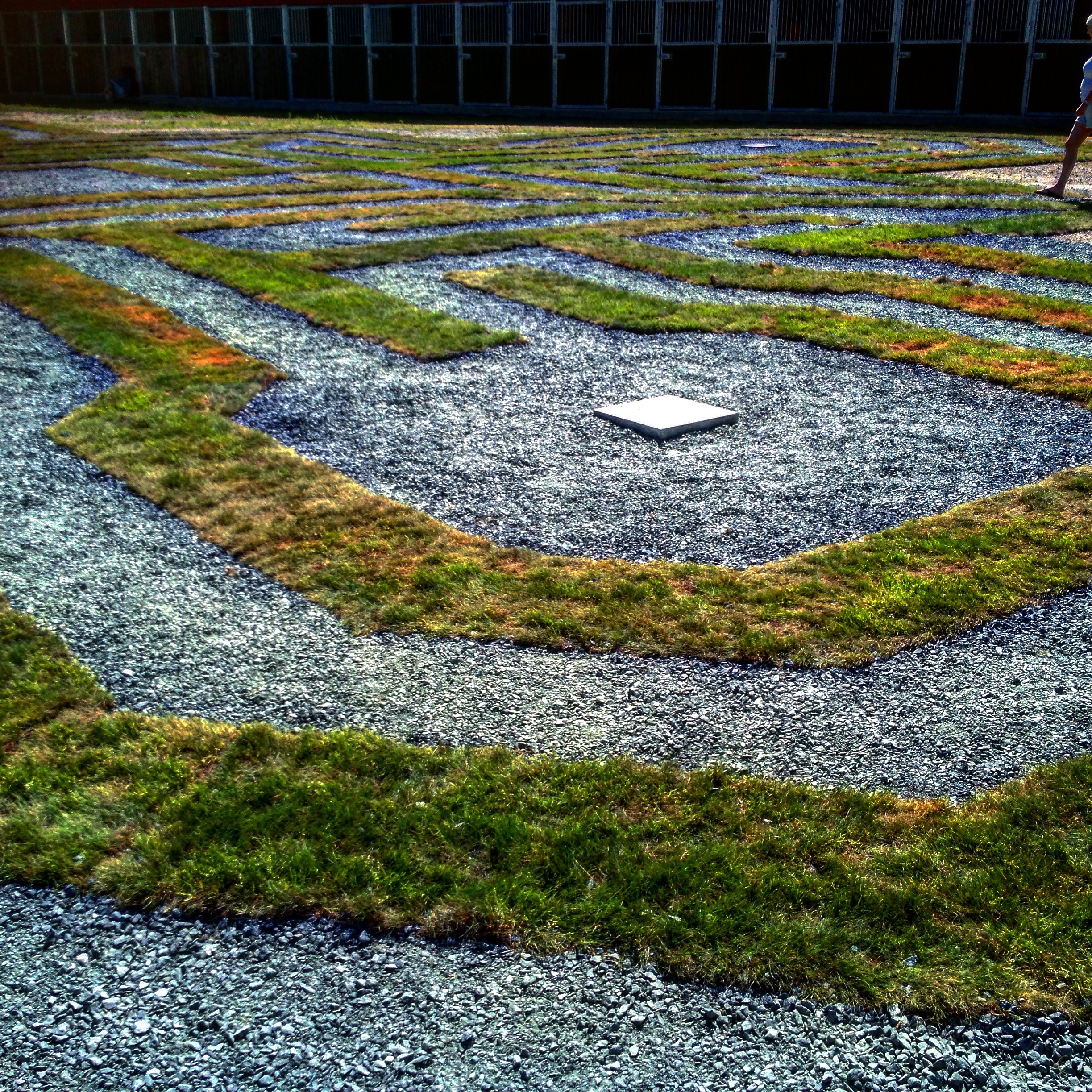 Dagane er så innhaldsrike her. Eg får mange viktige impulsar som eg kjem til å skriva vidare om seinare. Nå skal dei stenga her, så eg sluttar med to bilete frå Den stille hagen. Det første er rommet for den blå gledespetla i Kristuskransen. Det andre er livslabyrinten.