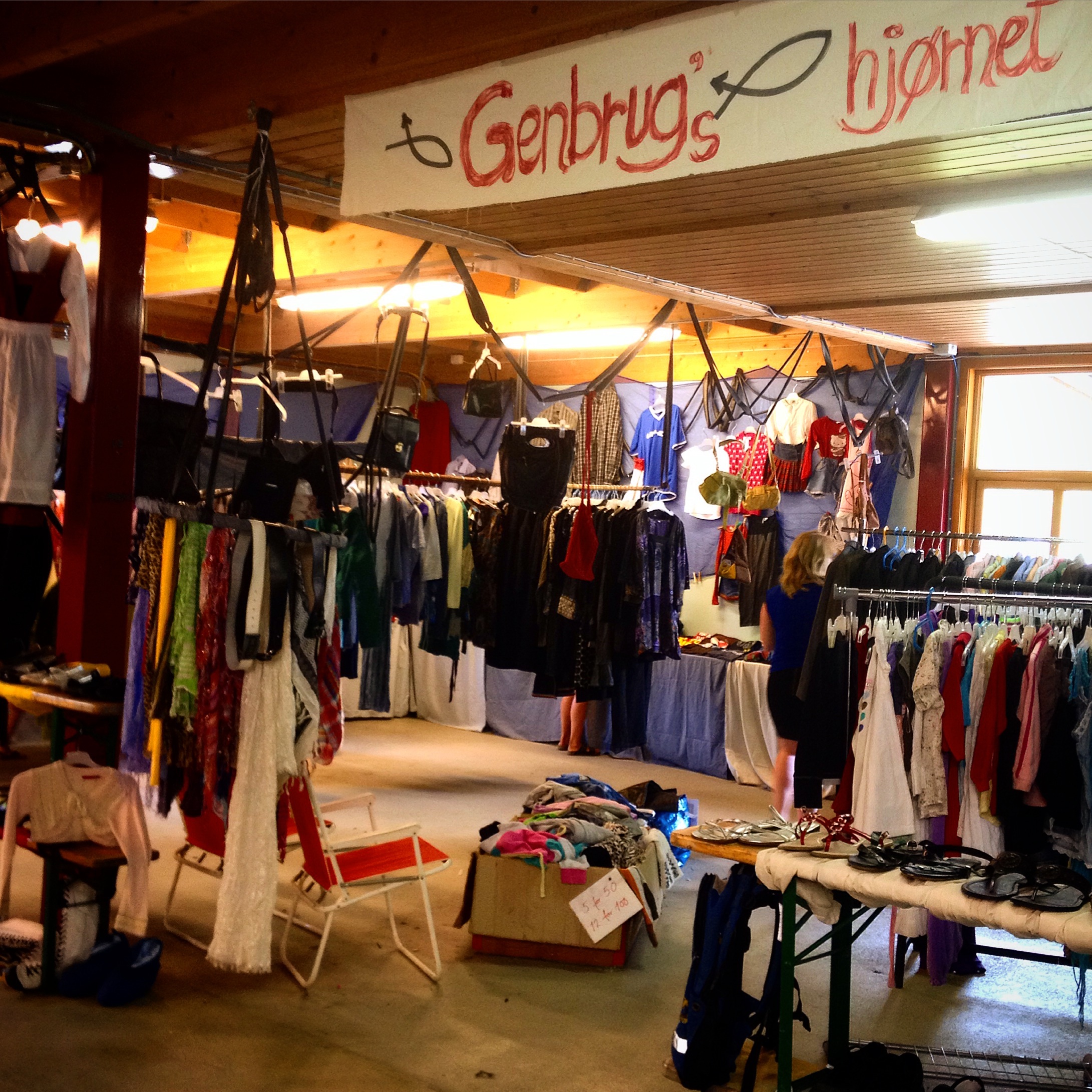 Her sit eg med min store trong til å leika journalist i eige liv. Eg har funne eit hol i dagen og plassert meg i vrimlehallen der det er ulike stands, kaffikjosk og iskjosk i tillegg til gjenbruksbutikk, bokhandel, gratis aviser og rettferdig handel av ulike slag. Det er som å sitja midt i verda og kikka på folk som går rundt og kikkar og kanskje finn noko dei ikkje veit dei leitar etter og folk som sit og snakkar med venner dei sjeldan ser og er glade for å få vera i lag med.