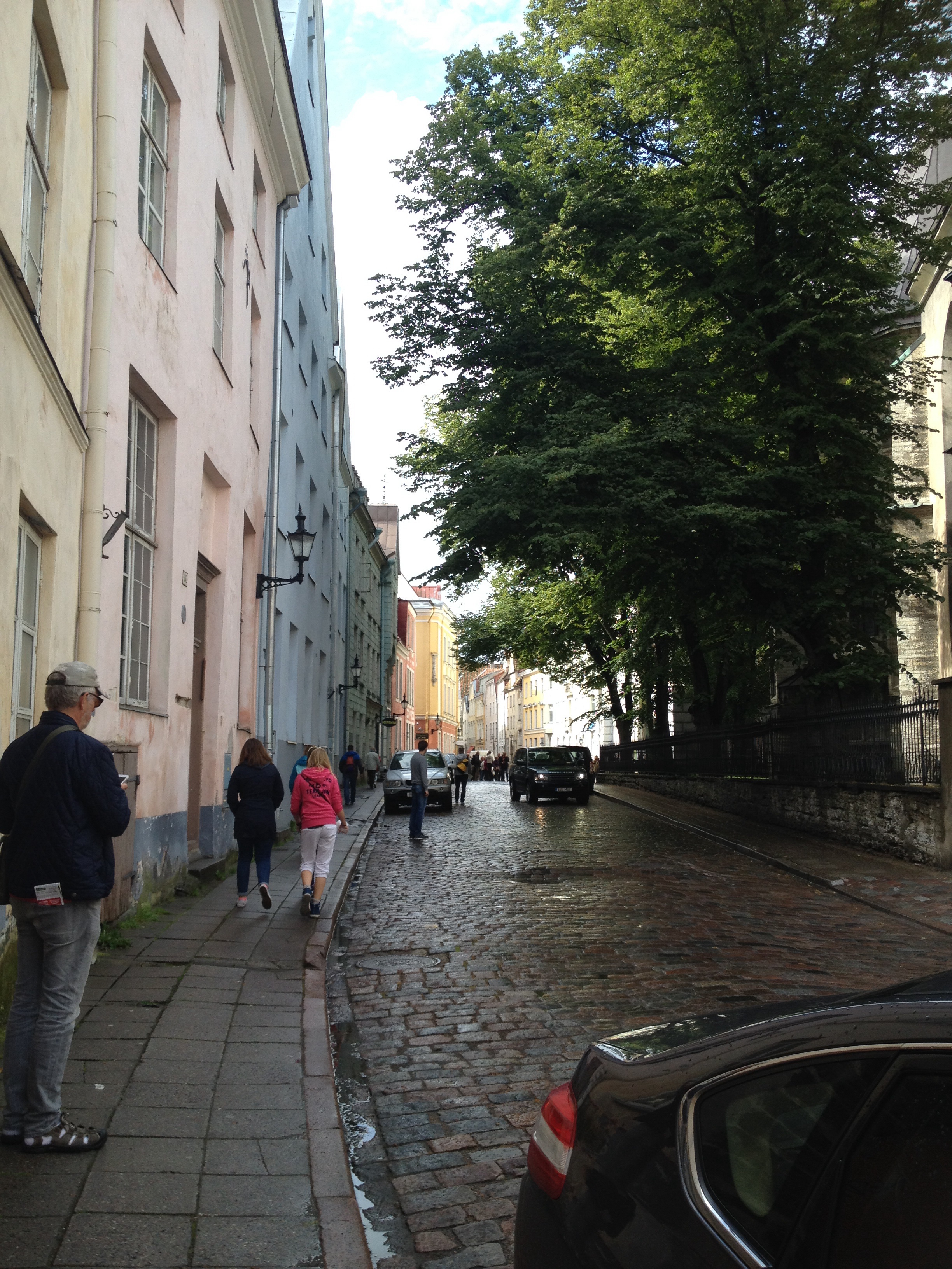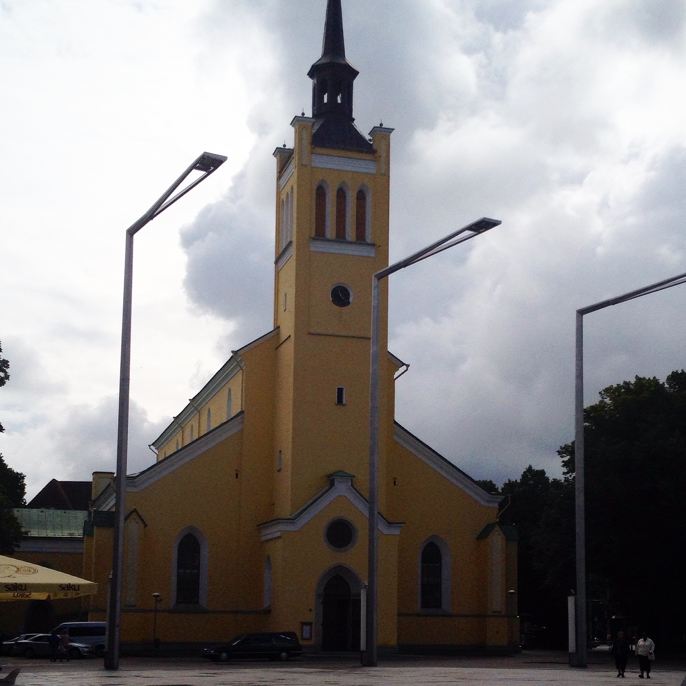 Me gjekk inn i den evangeliske kyrkja som var open, men då me kom inn viste det seg at det akkurat då var begravelse der inne. Presten sa akkurat nokre ord og så song dei » Så ta da mine hender» på estisk. Det virka faktisk som om det var andre turistar der inne og, men alt var veldig roleg og høgtideleg. Det kjendest likevel ikkje greitt å vera tilskoderar til ei privat sørgehøgtid, så me gjekk ut igjen. Me får heller gå tilbake seinare.
