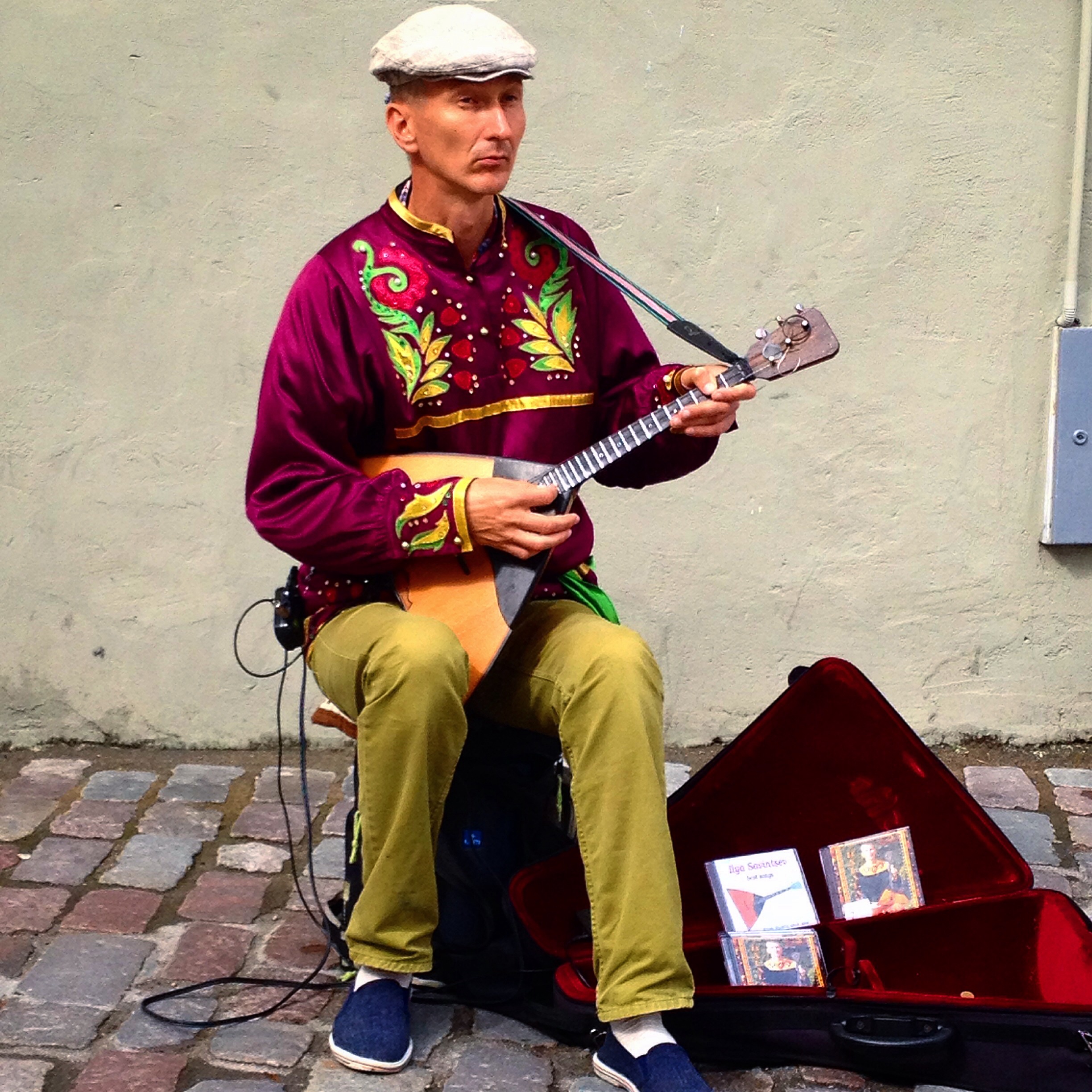 Og denne litt melankolske mannen sat på gata og spelte balalaika, akkurat her spelar han den songen frå Dr. Zhivago som på norsk heiter «En gang et sted…»