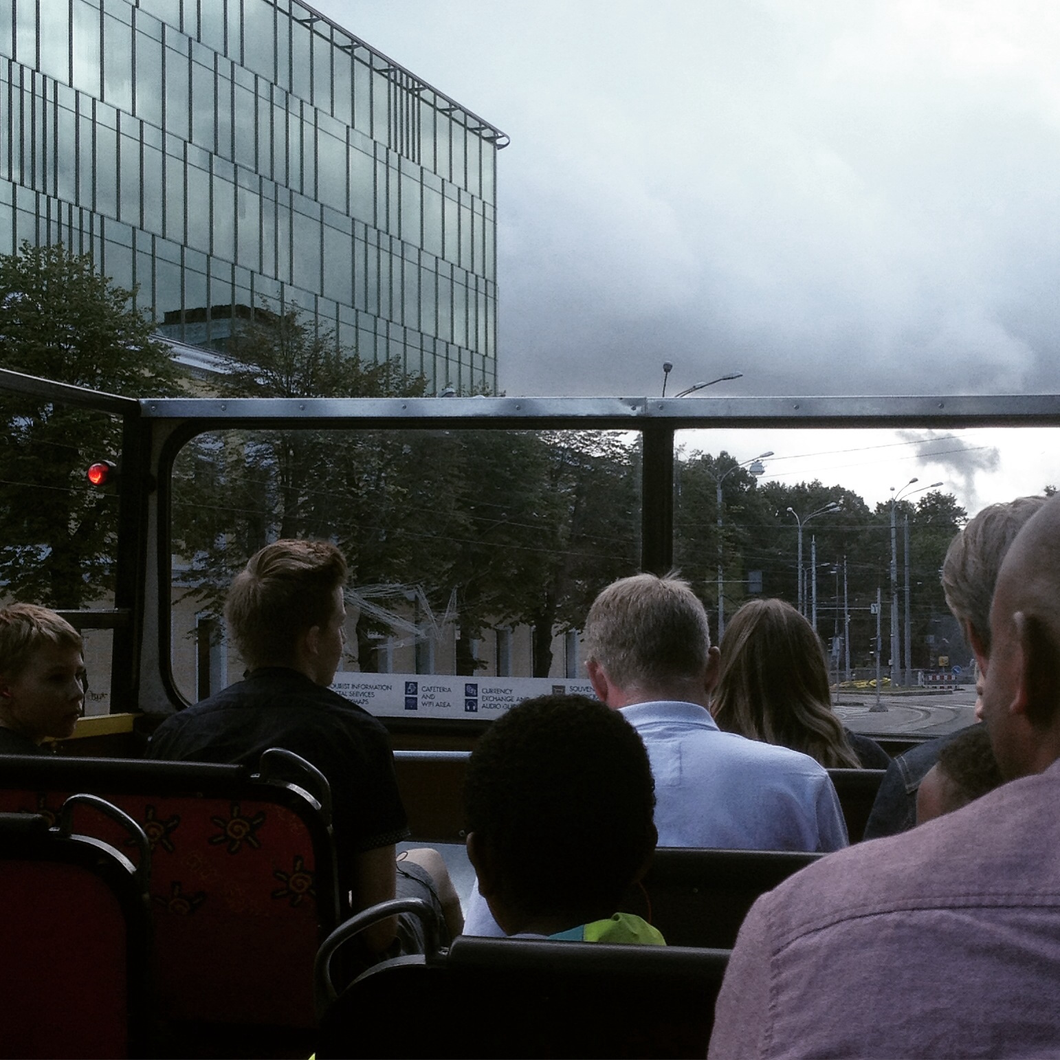Eg liker å bli frakta rundt i ein by medan nokon fortel meg historiane som høyrer byen til. Aller best er det sjølvsagt med ein levande og inspirert guide, men litt knirkete engelsk frå lydband via øyrepluggar som aldri vil halda seg på plass i øyrene, funkar det og. Dei sa at det var ekstremt farleg å reisa seg opp under turen fordi det store deler av ruta gjekk trikkeleidningar over bussen. Eg tok meg sjølv i å sitja og dukka i tillegg til å halda meg fast…