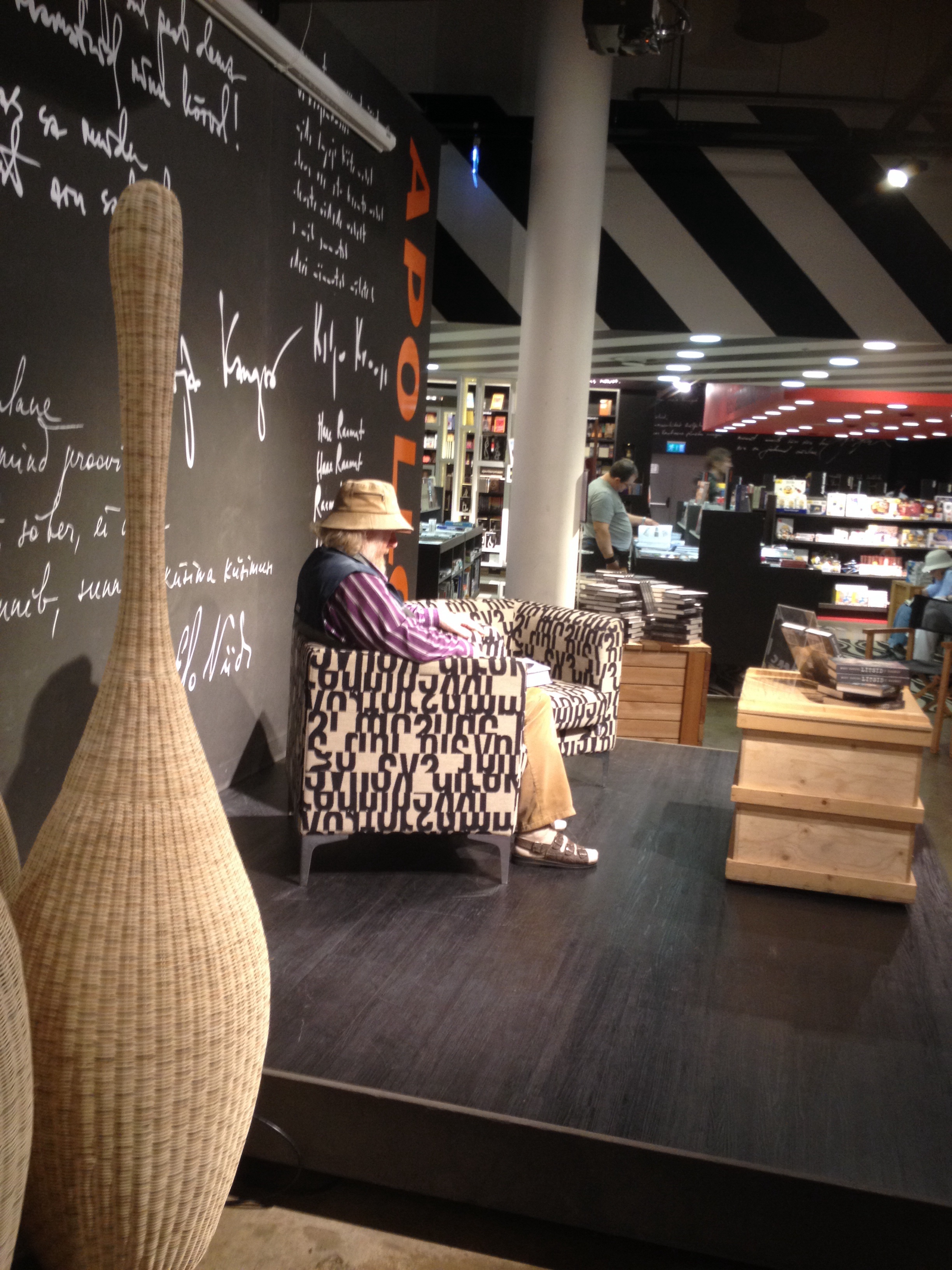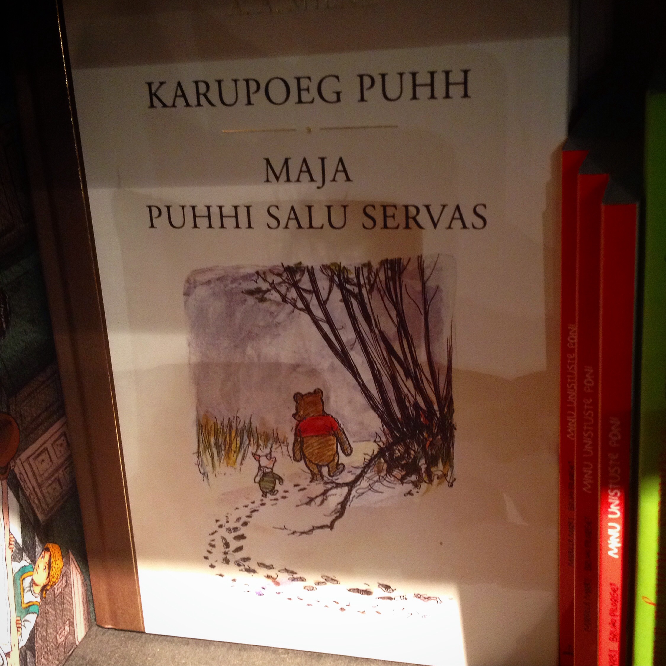 Etter turen var me innom ein stor og flott bokhandel. Dei hadde ein liten avdeling for bøker på engelsk, og ein litt større for bøker på russisk i tillegg til alle dei estiske. Eg likar det når dei har store lenestolar plasserte rundt omkring der folk kan ta med seg ei bok og sitja og lesa. Eg koste meg med å bla i bøker med gamle estiske strikkemønster og broderimønster. Eg hadde lyst til å kjøpa med meg begge deler, men tok til fornuft. Eg forstod jo ikkje eit ord av det som stod der, men sjølve mønsteret ville eg jo ha kunna bruka. Barnebøkene måtte eg og bruka tid til å kikka på. Der fann eg ein og annan gammal kjenning.