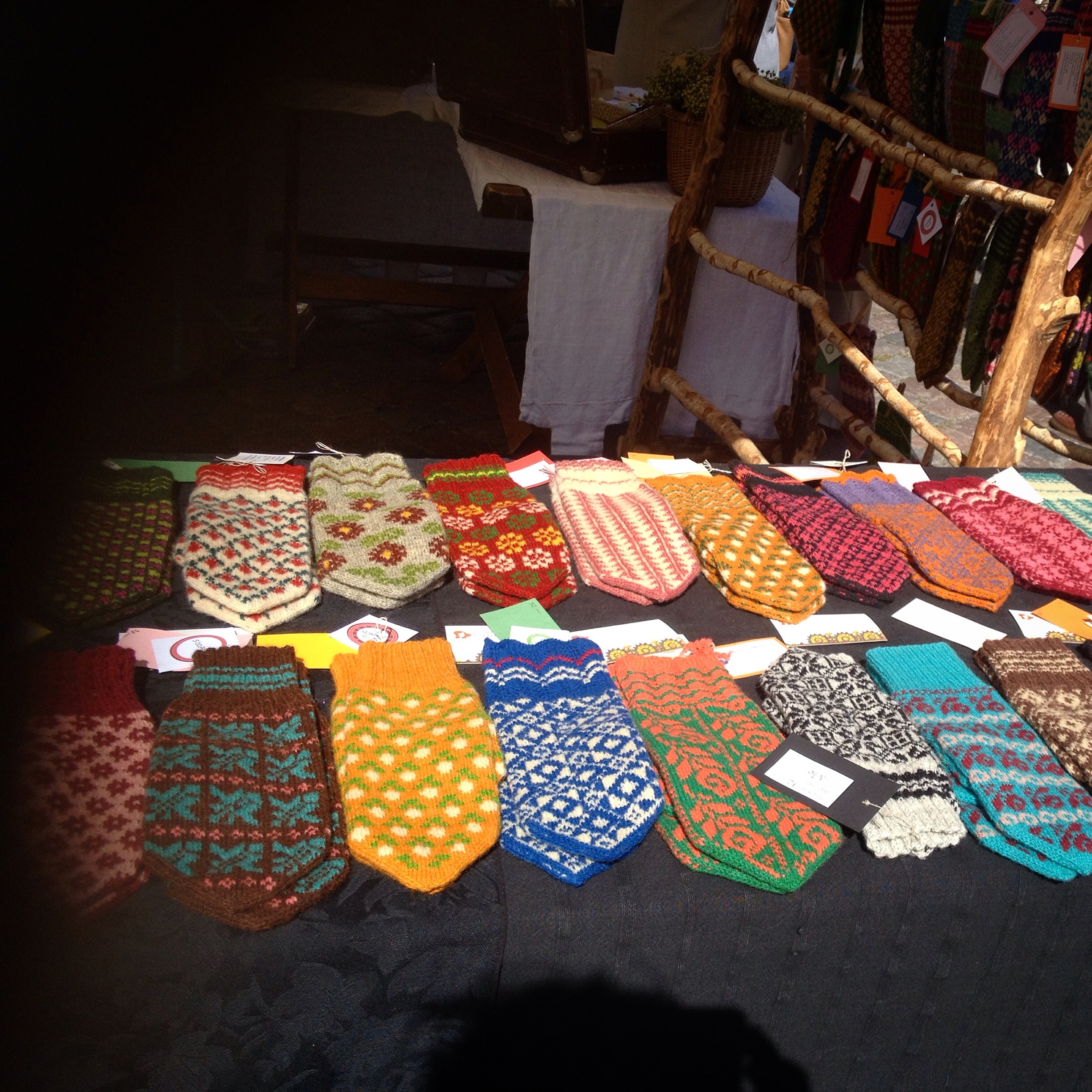Me måtte på torget ein tur i dag og. Eg hadde eigentleg tenkt å kjøpa meg sokkar eller vottar med gamle estiske mønster, men dei som var handstrikka var ganske dyre, og vottar er slikt som eg alltid klarer å mista etter kort tid. Men dei er jo fine å fotografera og.