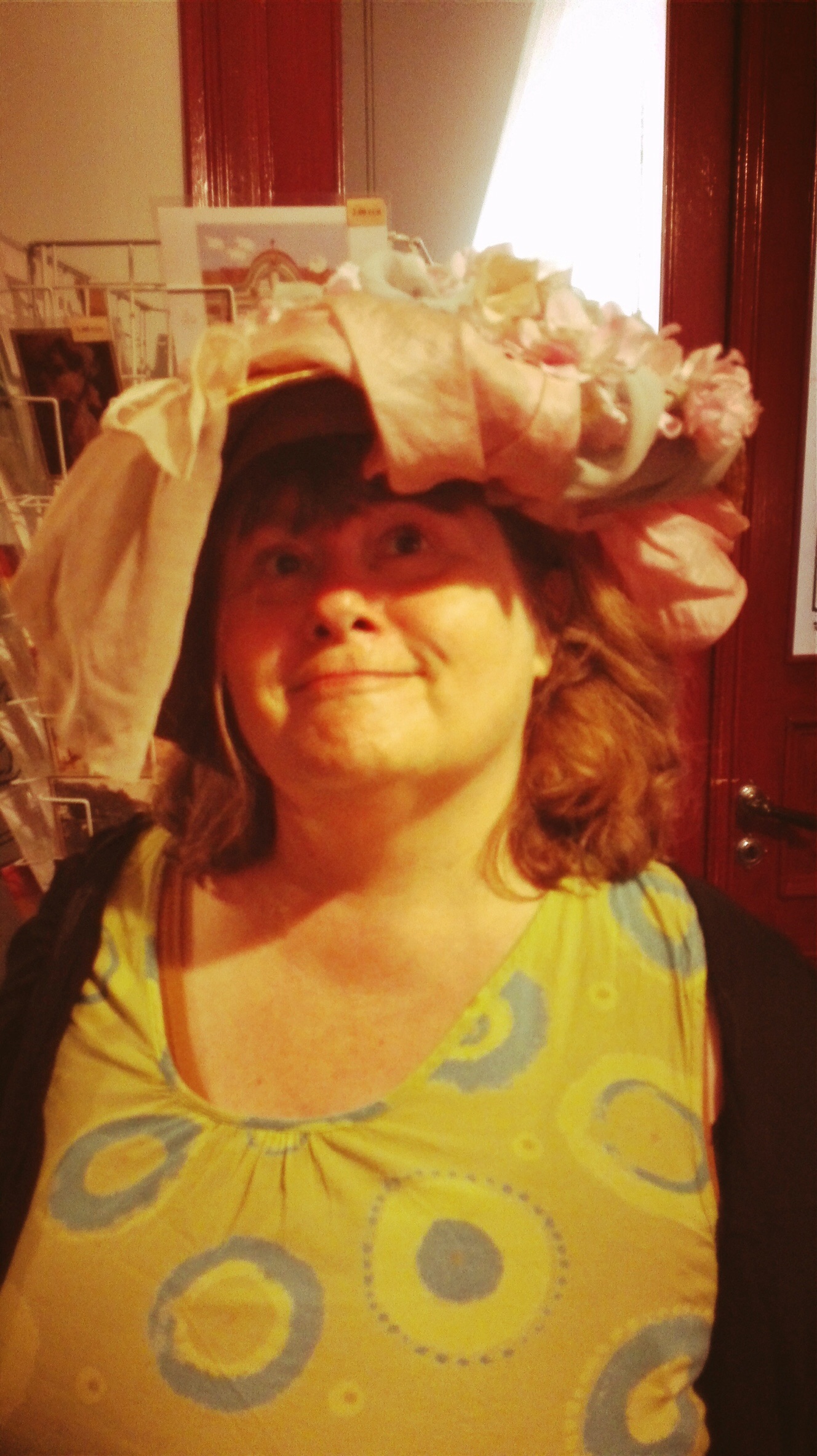 var forresten at i siste del av utstillinga kunne ein få prøva tidsriktige hattar og kappar og fotografera seg med desse…