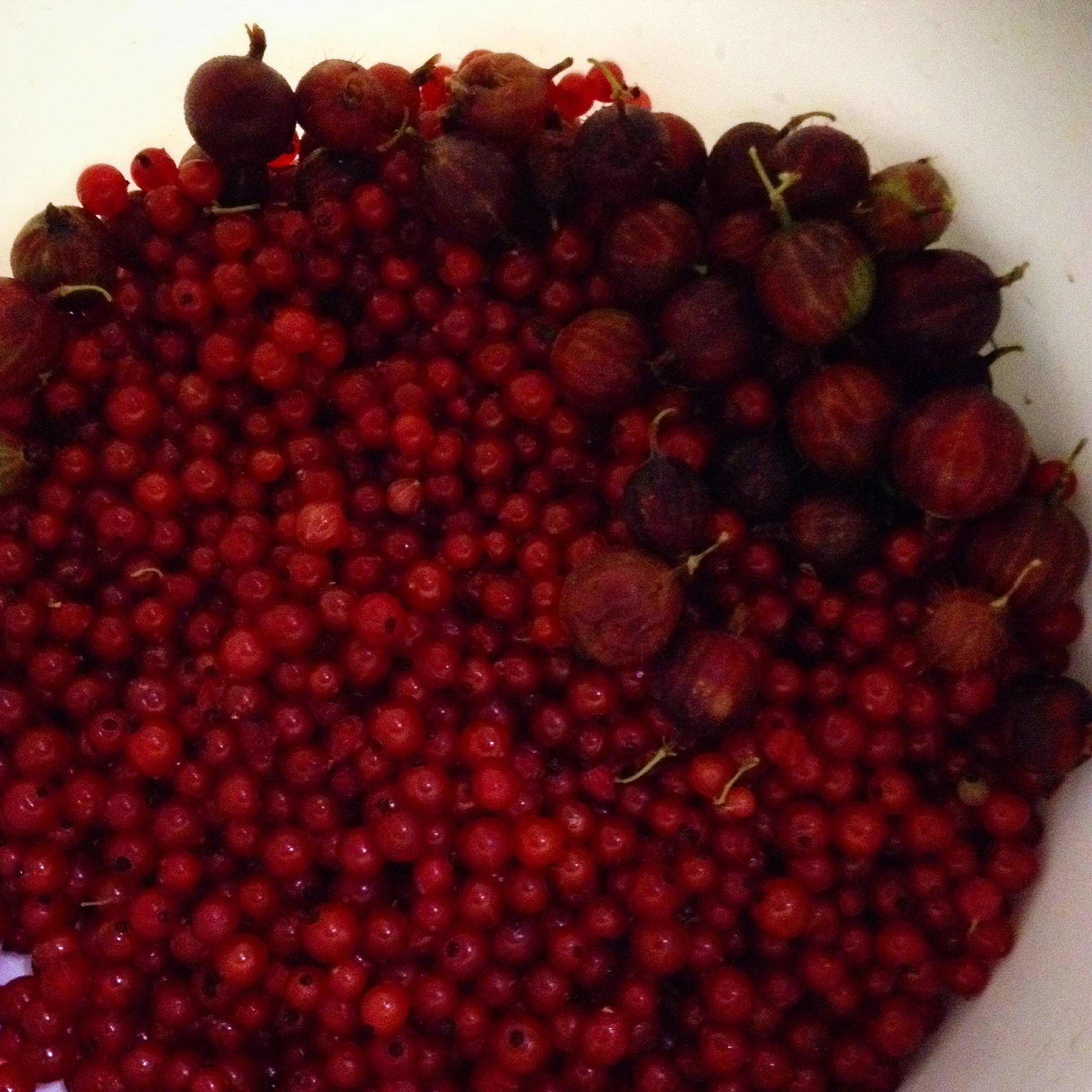To dagar den siste veka har eg vore hos mor og far og plukka bær. Det er ein koseleg aktivitet eg liksom må ha med meg kvart år i august. I år var det lite bær, men det vart då ein fem- seks liter med rips og litt stikkelsbær. Med i opplevinga var mor sin heimekokte komlemiddag rett etter jobb i dag. Etter ein lummer varme heile dagen, begynte det å regna medan eg stod og plukka. Eg hadde teke med meg regnkåpe så det gjorde ikkje noko. Det var så varmt ute at det i grunnen bare var behageleg med vått gras og våte tær i sandalar.