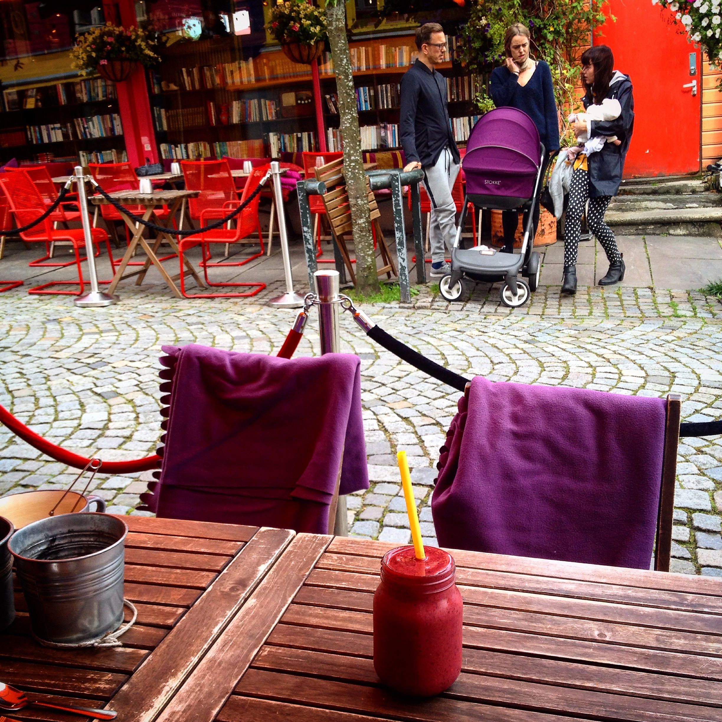 Etter at eg har fått roa meg litt, støtta ei romdame som skal augeopererast, kjøpt eit nummer av asfalt og sagt ja til å bli «Redd barna faddar,» sjølv om eg er faddar i frå før, finn eg fram skriveboka og set meg i fargegata med skogsbærsmoothie og penn. Seinare blir det ei god skriveøkt på biblioteket. Kanskje eg skal dra til Stavanger og skriva oftare.Det er kjempespennande å vera der og sjå og høyra medan ein let ord og setningar koma ut av pennen.