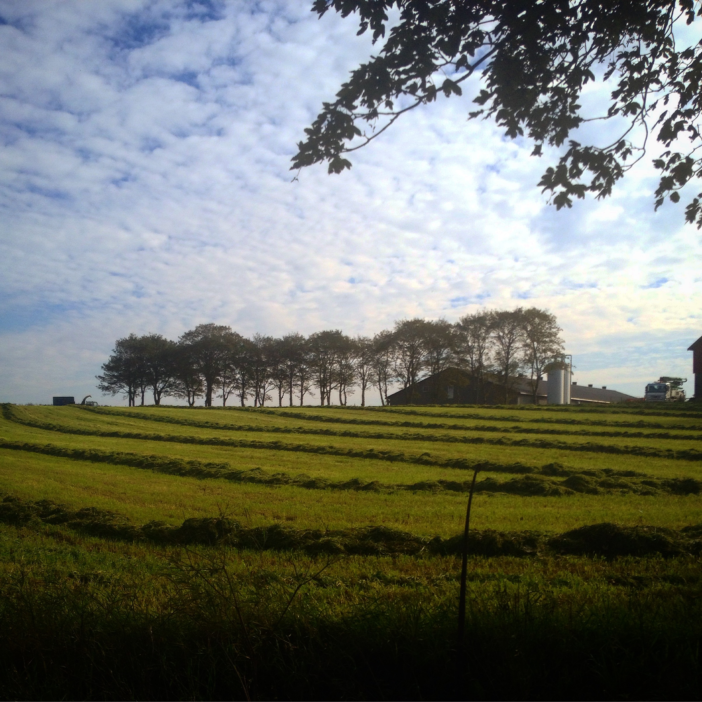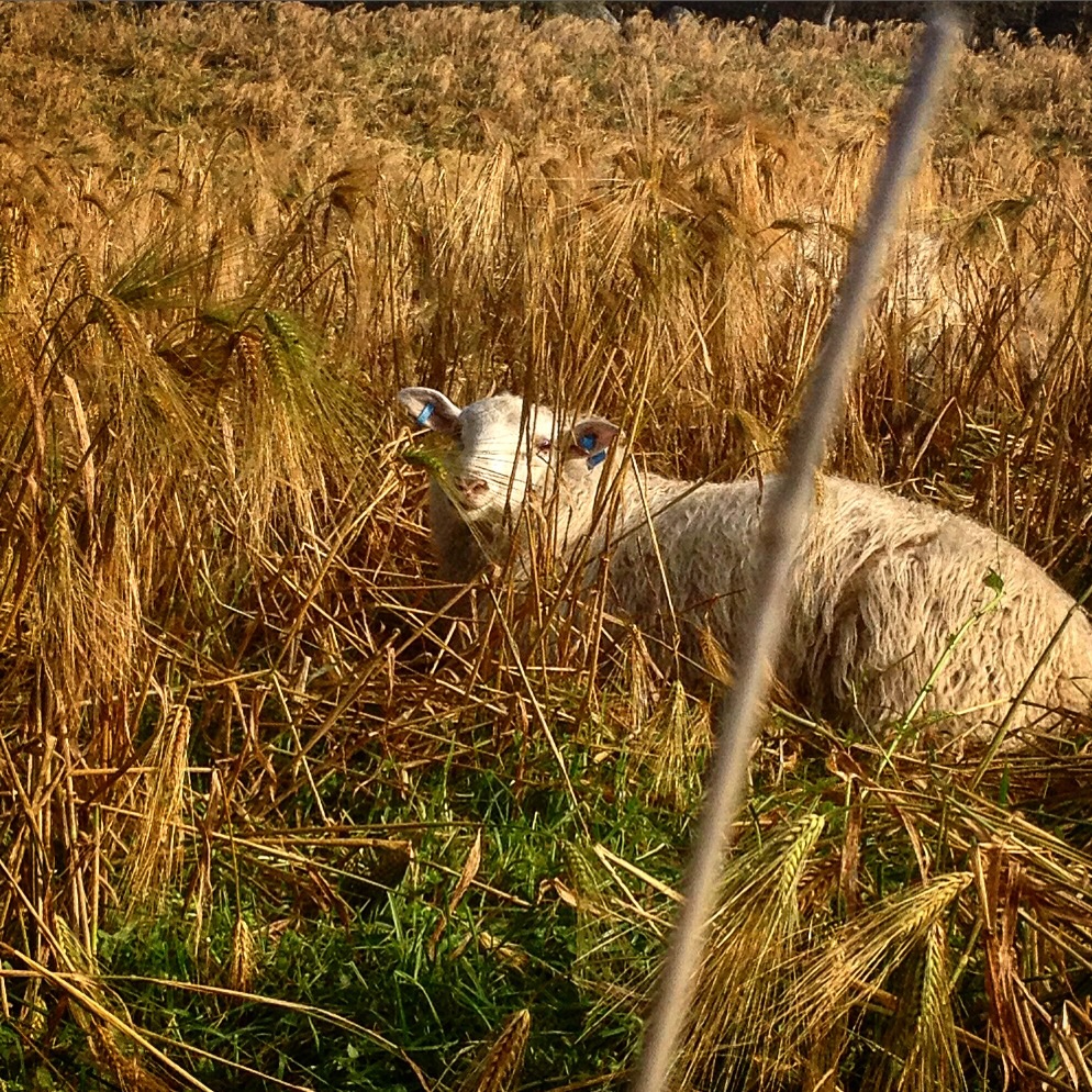 For ein fin oktobersundag. Det vart radiogudsteneste og sein frokost etter ein sein kveld i går. Så trilla eg sykkelen ut av garasjen for å få meg ein tur i det fine veret. Det var seinsommartemperatur ute, og hausten har framleis ikkje klart å bita seg heilt fast i naturen. På Fotland fann eg desse sauene som nytte livet i ein byggåker.