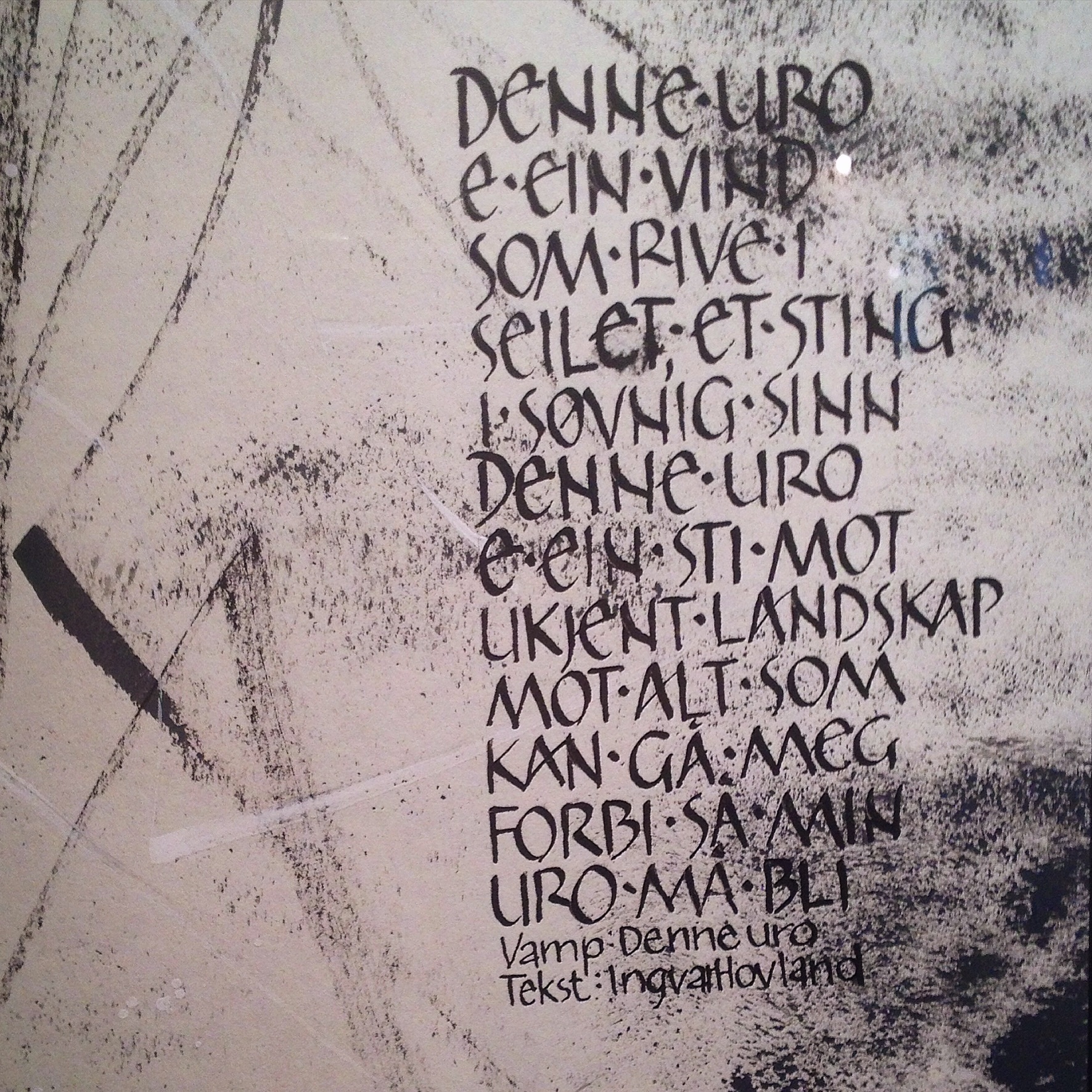 Ho hadde og brukt tekstar frå Vamp sine plater. Legg merke til korleis ho lett storleikane på bokstavane og bokstavane fortelja ei eiga historie.