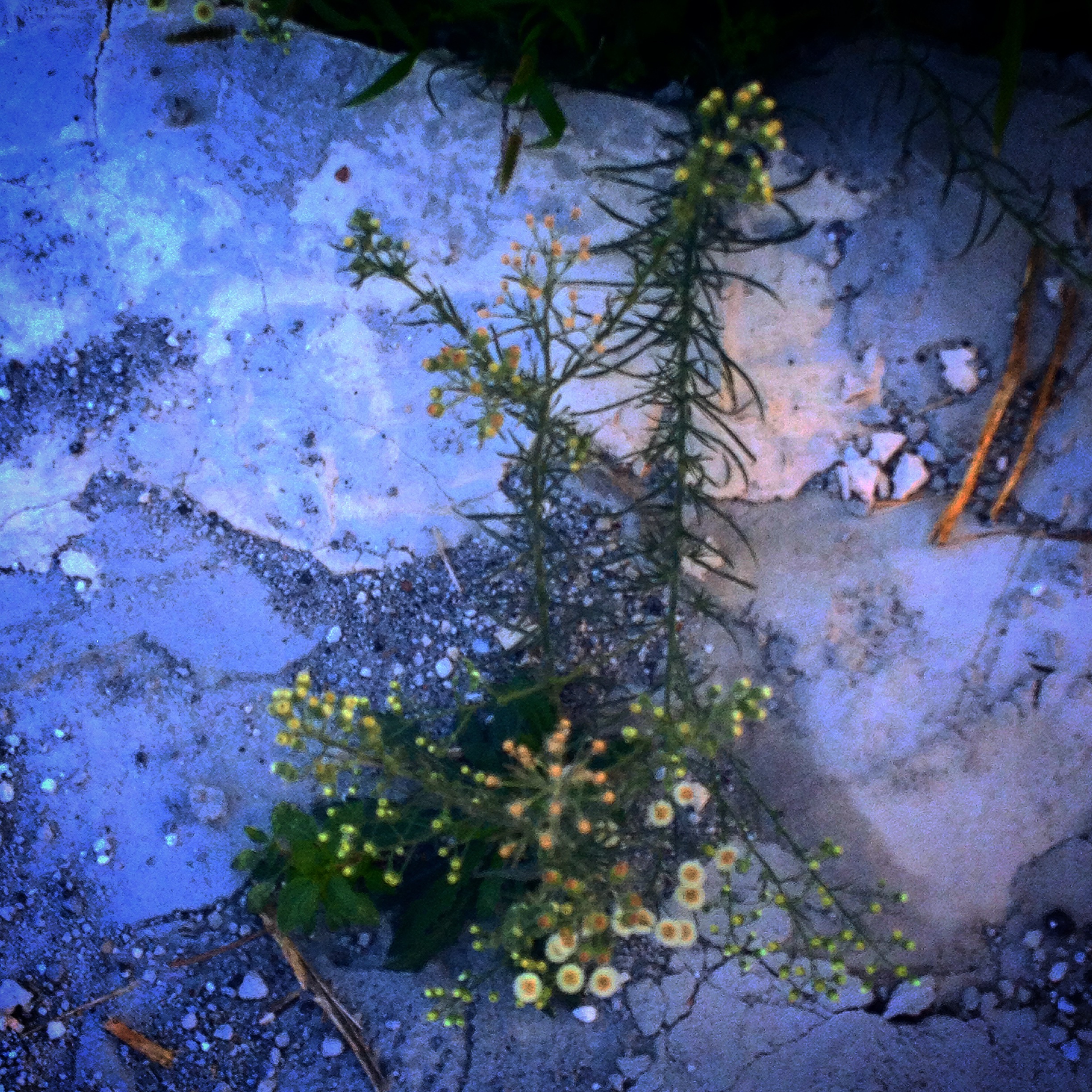Eg blir alltid så imponert over blomar som veks seg gjennom asfalt og hardtrampa grus. Denne gjekk me forbi på gata.