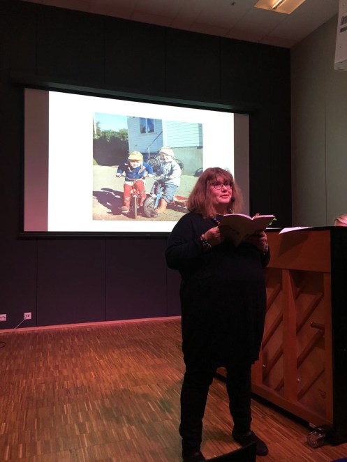 Det var kjekt å ha to babyar i salen som slo til med å laga babylydar akkurat i det eg skulle lesa dikta om å venta på å bli mormor. Det var fint å ha både foreldre, nære venner, bror, barn, svigerbarn og niese i salen og at til og med den vesle mormorjenta Iben, var til stades, toppa det heile. Etterpå var det mange som vart igjen for å kjøpa bøker og slå av ein prat, akkurat slik eg hadde håpa. Det vart nesten som å halda eit stort selskap med svært enkel bevertning. Å få Sunniva heim frå Valencia er kjempekjekt, og det er koseleg at kjærasten hennar, Trygve kom frå Oslo for å vera i lag med henne og oss dei dagane ho er heime.