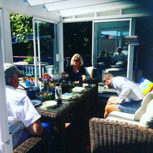 Litt seinare på dagen dekka me på til middagsgjester ute i hagestova og serverte indisk kyllingsuppe kokt av Ingrid og indisk sjømatwok, laga av Leif. Sjølv slapp eg unna med å dekka bordet denne gongen. Noko av det fine med ferie er at sundagar kan brukas til alt anna enn å tenkja på om ein er klar for morgondagen i klasseromet. Heilt skulefrie er ikkje dagane mine. Eg skal jo studera norsk komande skuleår, og sidan livet mitt i grunnen har vore meir enn fullmøblert utan studier, og eg ikkje har kome inn under ordninga med frikjøp med vikar, så har eg planar om å lesa mest mogleg av pensum nå i ferien. Eg er eit slikt menneske som av og til startar med desserten, og det har eg gjort nå. Då eg såg at min gamle venn frå lærarhøgskulen, Svein Slettan, var redaktør og medforfattar for den boka som handla om ungdomslitteratur, så vart det endå meir naturleg å begynna med den. Etter å ha lese boka med stor glede gjekk eg med tilsvarande appetitt laus på den om barnelitteratur. Nå har eg lese begge to, og verkeleg kost meg med lesinga. Eg har alltid hatt veldig lyst til å skriva barnebøker, og prøvd meg så vidt på det og. Nå fekk eg endå meir lyst til akkurat det, så det har eg lyst til å få tid og inspirasjon til. Eg vart og styrka i trua på at eg trygt kan fortsetja med det som er noko av det aller kjekkaste i lærarjobben, nemleg det å lesa høgt for klassar. Eg har alltid prioritert å lesa høgt kvar einaste dag, til og med for sjuandeklassingar, og det kjenner eg heldigvis at eg kan fortsetja med med godt samvit. Eg reknar ikkje med at resten av pensumlitteraturen blir ganske like lystbetont å koma gjennom, men nå er eg i det minste godt i gang.