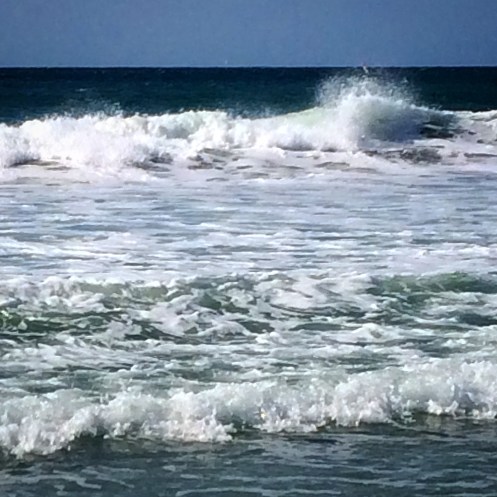 milde bølgjer slår mot land.