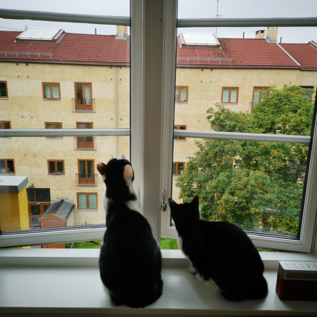 Me er så heldige at me får låna leiligheita til Sunniva og Trygve for å passa kattane medan dei er på ferie. Det er ei utmerka løysing for alle partar, og ikkje minst for oss. Me vart tekne i mot med varm linsesuppe som varma godt for oss som var litt våte og kalde etter nedrigging i pøsregn i Seljord og ein biltur med straumsparemodus. Me var så heldige at me fekk eit døgn i lag med husfolket før dei reiste til ferieland grytidleg i går morges.