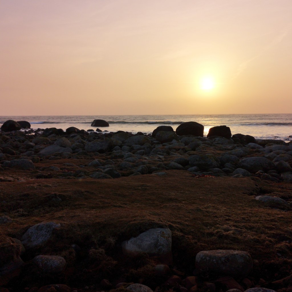 I går reiste me ned til Vik igjen, parkerte ved Vighålå, og gjekk ned til stranda. Me oppdaga for ei veke sidan kor fint det er der nede. Denne gongen gjekk me til venstre i staden for til høgre og gjekk langs steinstrender eg ikkje har visst om. Me haldt oss heilt ute i havkanten og klatra over ein og annan gjerdeklyvar for å koma oss vidare. Det var fantastisk å sjå fleire viper enn eg har sett samla på mange år. Lerka song så fint at ein kunne gråta, måkane flaug skrikande over bølgjene og tjeldar gjekk i vasskanten. I ei lita bukt var det ender og eit svanepar. Medan me gjekk der brukte sola lang tid på å bli meir og meir oransjefarga og koma nærare og nærare havflata.