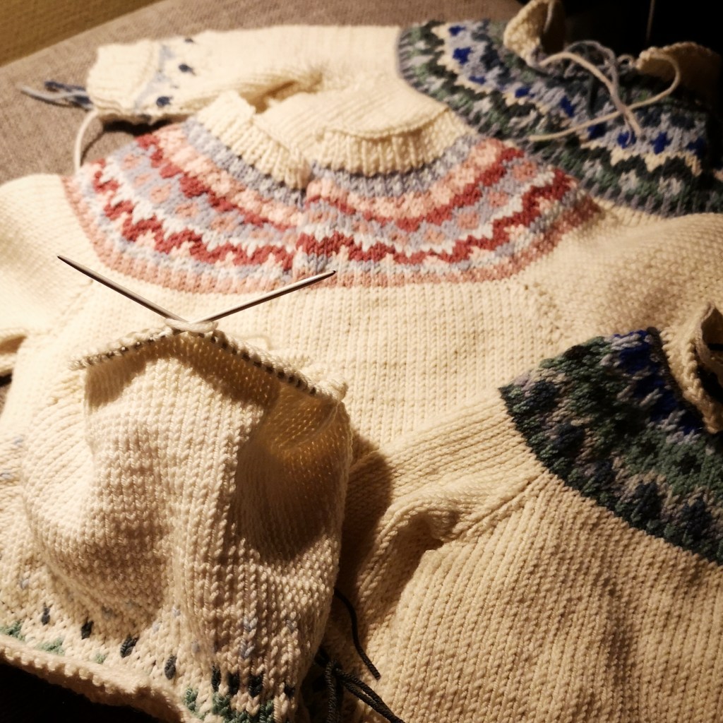 I desse tidene som i beste fall har ekstra plass for ettertanke og andakt, kan det tenkjast at nokon kjem på tanken å fordjupa seg i litteratur om meditasjon, bøn og teknikkar for å gje sjela kvile og tankane venger. I dag kom eg på at det mangla eit kapittel i slike bøker som kanskje ingen har skrive, derfor tenkte eg at eg kanskje måtte skriva om det sjølv. Eg er heilt sikker på at mange fleire enn meg veit om at det går an å be med strikkepinnar. Det står bare veldig lite om det i handarbeidsbøker og strikkehefte…