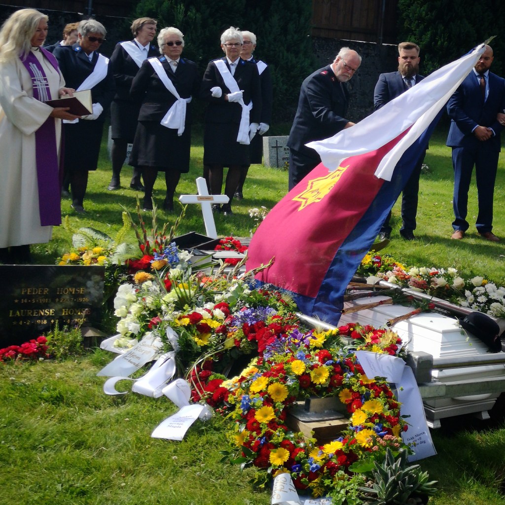 I frelsesarmeen brukar dei orda «forfremmet til herligheten» når nokon døyr, og denne gravferda hadde ein undertone av glede og fest som eg sjeldan har opplevd. Det var tida for å takka for eit liv som har vore, og ei feiring sterkt prega av håpet og trua på at nå har avdøde gått over til noko betre og ein sterk tillit til at me skal møtast igjen.
