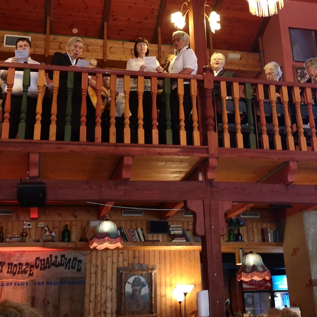 Minnesamlinga er lagt til ein nesten litt surrealistisk plass i denne samanhangen, Crazy horse hotell i Westernbyen som tidlegare var ein del av kongeparken. Med Saloonpreg i ei lita grend av hus frå det ville vesten vart det halde minnetalar og ete smørbrød og marsipankake med kaffi til. Frelsesarmekoret song frå galleriet, og på eit tidspunkt kom det inn ein mann i fullt cowboykostyme. På ein eller annan merkeleg måte føltest det heilt rett.