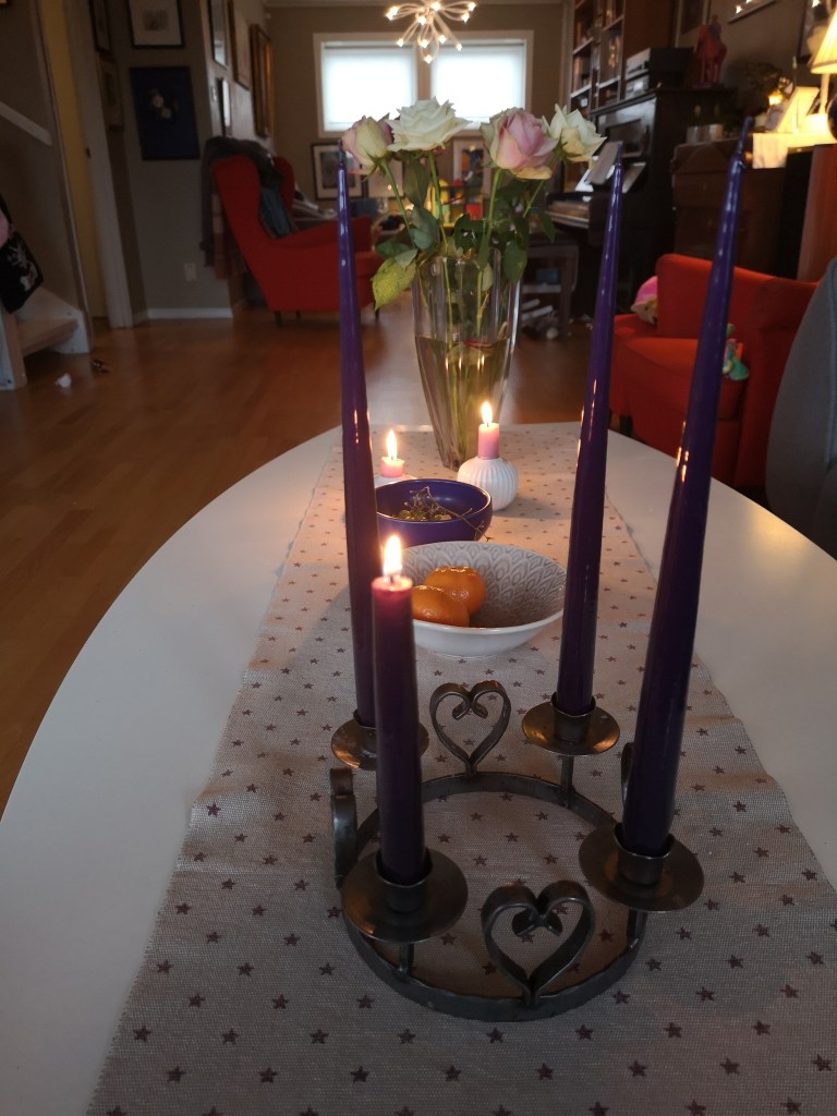 Nå er gullungen på leikeplassen med morfar, huset lukter nydeleg av nysteikta peparkaker av deig kjøpt på Ikea. Stova ser ut som ein barnehage. Det er fint slik. God sundag i advent til alle som les. La oss samla lys og varme og dela ut på alle måtar me framleis har lov til å gjera det .