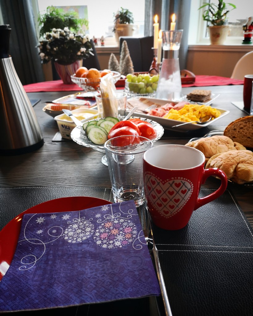 I dag hadde eg ein fin fredagsføremiddag på besøk hos tidlegare kollega Ingrid i lag med syster mi. Det vart nokre kjempekoselege timar i eit førjulspynta hus med bål i peisen, god frokost, julekaffi og heimebakst. Nå når det å vera på besøk hos nokon er noko ein ikkje gjer så ofte, så blir det ekstra fint å gjera det av og til. Menneske treng menneske.