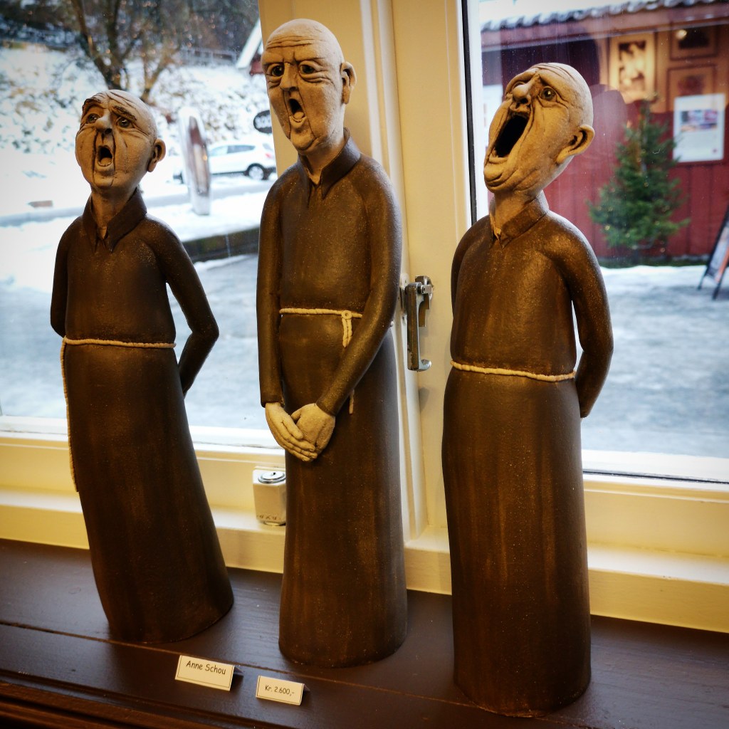 Desse munkene såg eg før jul på Bærums verk. Dei er så fine, så dei skal få stå her og synga i dag. Eg har sett på konsert med kringkastingsorkesteret, veldig fint. Eg skulle gjerne hatt med meg konserten i Storstova i går med Magnus Rommetveit Staveland og syngjande venner. Eg har vore der før, og det har vore så fint, men i år vart det ikkje slik.