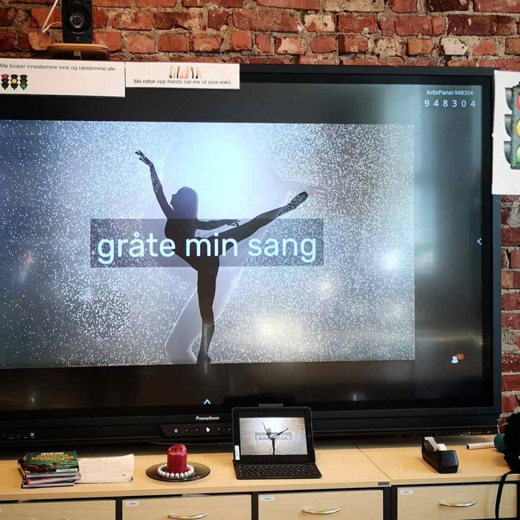 Desse to bileta er frå eit av klasseroma eg held til i. Me er med på noko som heiter «Skolenes sangdag» som mellom anna går ut på at me øver inn ein del songar som «alle skulebarn i landet» skal synga den 12 mai til lyden av Kringkastingsorkesteret. Det er fint å begynna skuledagar med song, og sidan ingen har fortald til oss i skulen at me sjal vera forsiktige med å synga på grunn av smittefare, så har eg lagt den tanken heilt til sides…