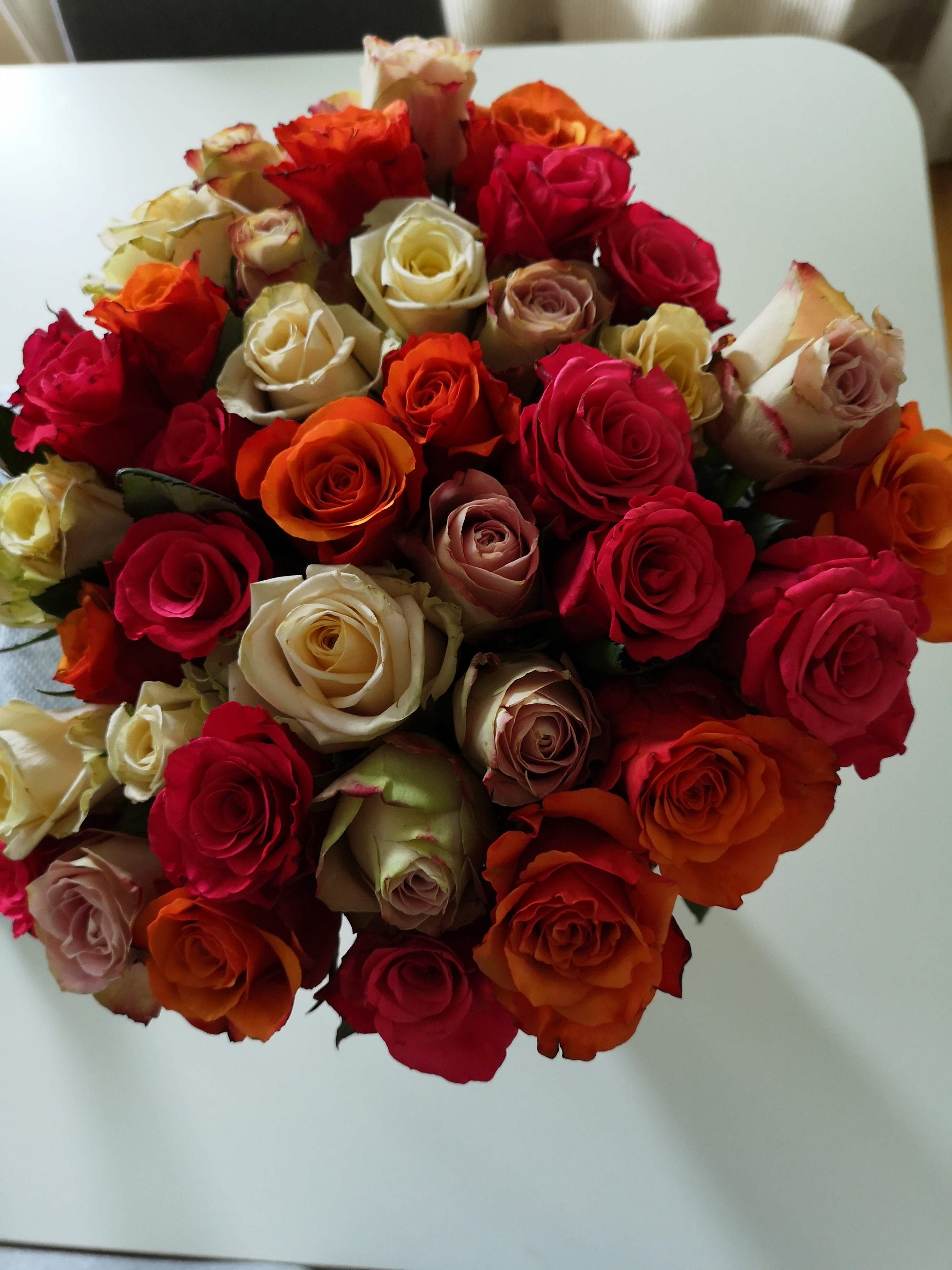 Nokre av dei finaste bukettane eg har fått i mitt liv har eg fått av svoger Joffe og svigerinne Elisabeth. Eg trur dei må vera verkeleg feinschmeckarar når det gjeld blomar. Ein kjempestor bukett med roser i alle raude nyansar. Kan det bli vakrare?