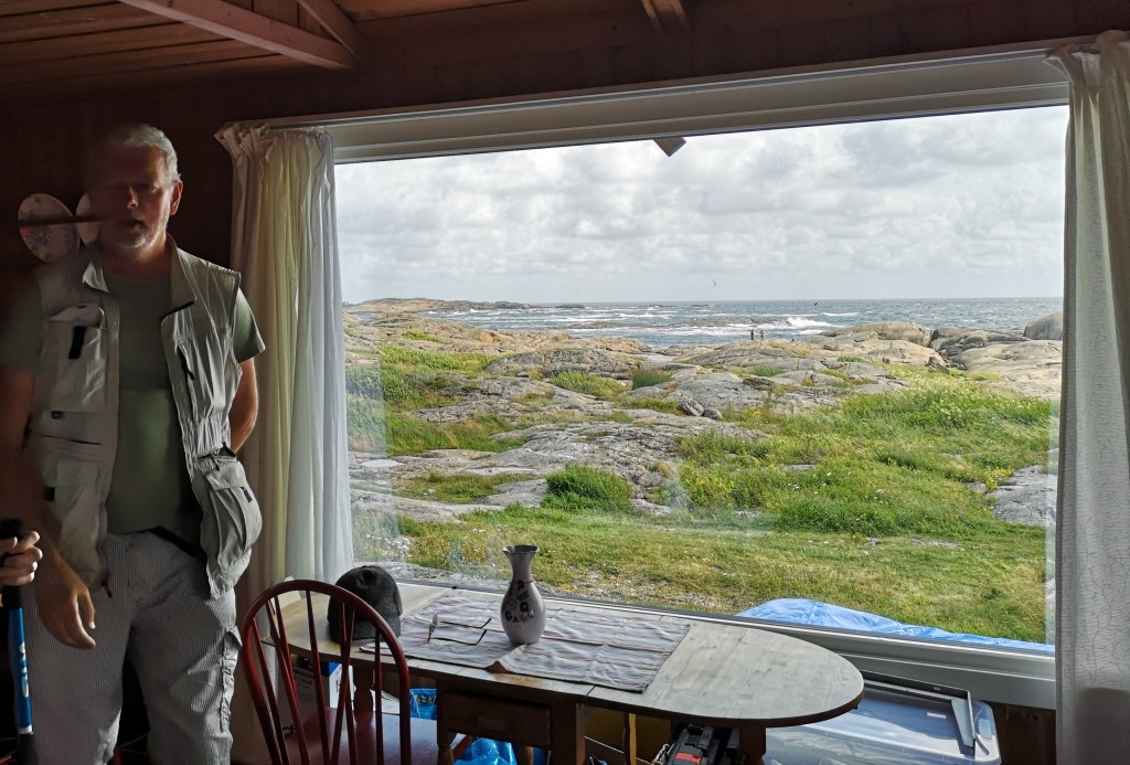 Sånn utsikt går det òg an å ha frå stovevindauget. I dette tilfellet stovevindauget frå hytta til Astrid og Einar i Vestfold. Der var me på onsdag og hadde det fint i lag med dei. Badetøy hadde me med, men havet kokte så pass i vinden at det heller vart ei vandring i det vakre landskapet.