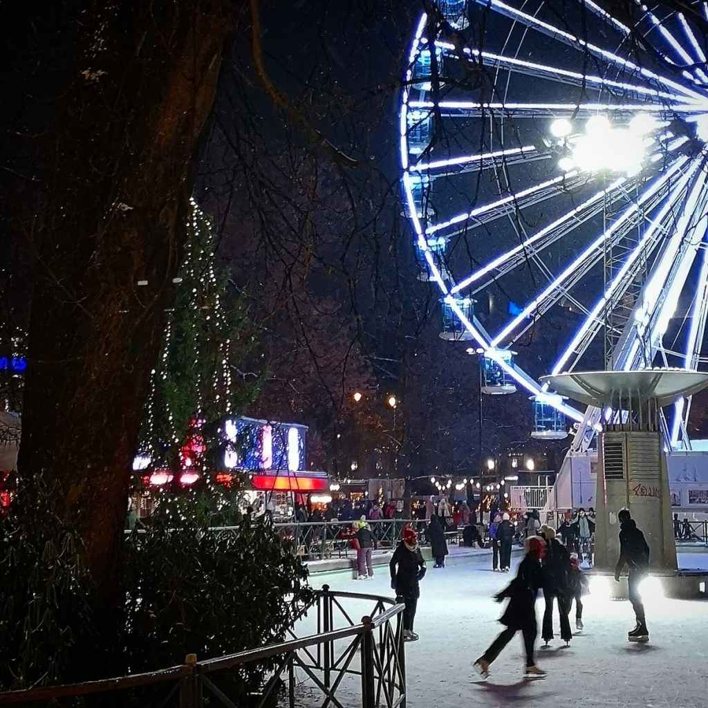 Då me kom til byen litt før fem, var det allereie mørkt. Me gjekk gjennom julemarkaden i Spikersuppa og kjøpte med oss ein pose varme smultringar.