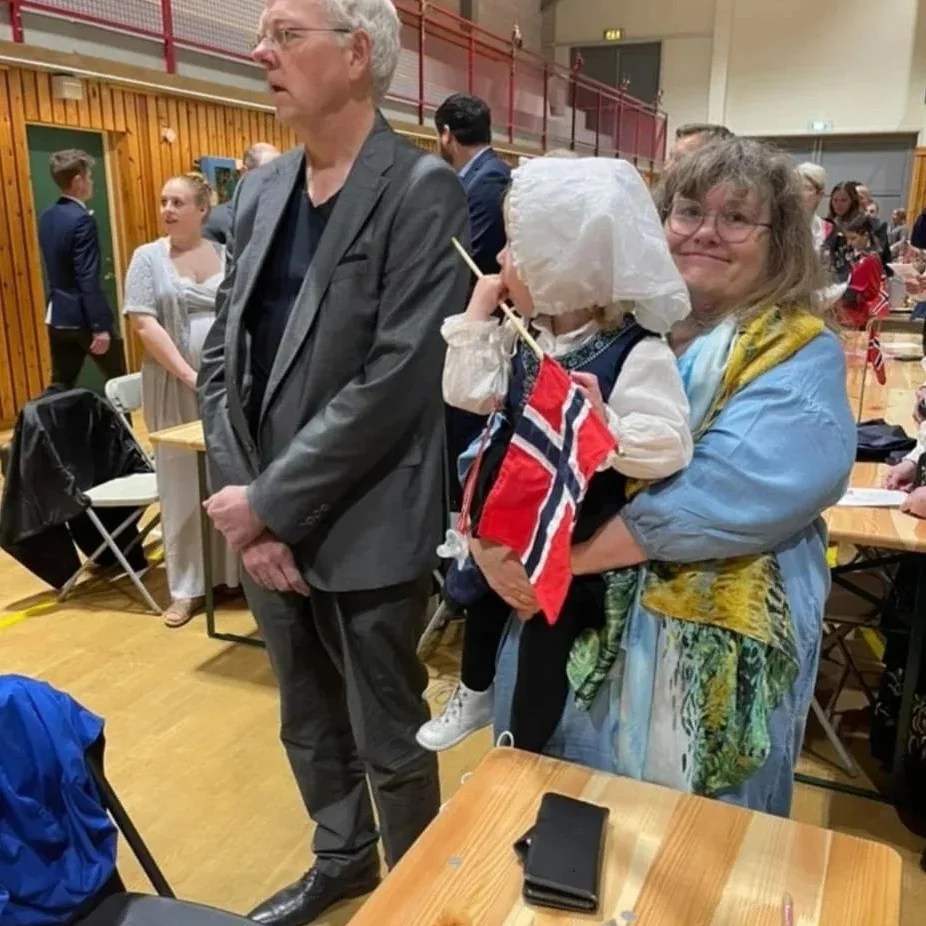 Dagen har vore fin. Som me snakka om rundt bordet i føremiddag, det er liksom litt annleis å feira 17.mai i år. Etter to år med korona 17.mai, innser me at det ikkje er sjølvsagt å få til tradisjonell feiring med mange folk tett i tett. Etter tre månadar med krig i Ukraina innser me at det å leva i eit fritt og demokratisk land heller ikkje er noko ein bare kan ta for gitt. Då minstemann i familien stolt vart trilla gjennom 17.-maitoget på trehjulssykkel med styrestong, og snudde seg for å smila og vifta med flagget då ho såg mormor og morfar stå og vinka i vegkanten, vart mormora nesten overmanna av sentimentale kjensler. Storesøstera gjekk nesten heilt sjølv i toget, side om side med bestevennen frå barnehagen. Etterpå var me ein liten delegasjon på åtte frå familien som høyrde på tale og korpsmusikk, song nasjonalsongen og drakk kaffi i Kåsenhallen. Feiringa i Tu-krinsen er til og med mykje mindre enn barndommens 17.mai på Ålgård. Jentene koste seg veldig.