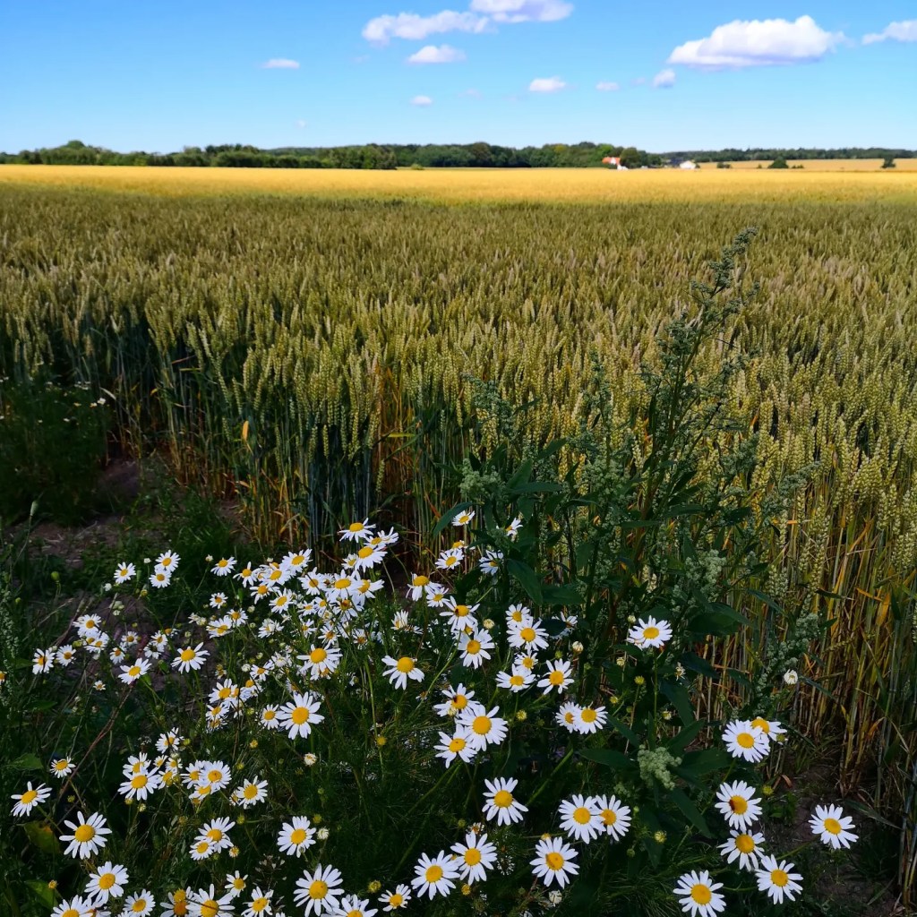 Veret var nydeleg. Sommarsol og korterma sommarkjole,jakken kom aldri på. Så vidt eg kan observera er det framleis bra med sommarfuglar og insekt i Danmark. Kornåkrar der kornblomar, valmuer og markblomar blandar seg med kornet ytst ved åkerkanten er noko av det vakraste eg veit.