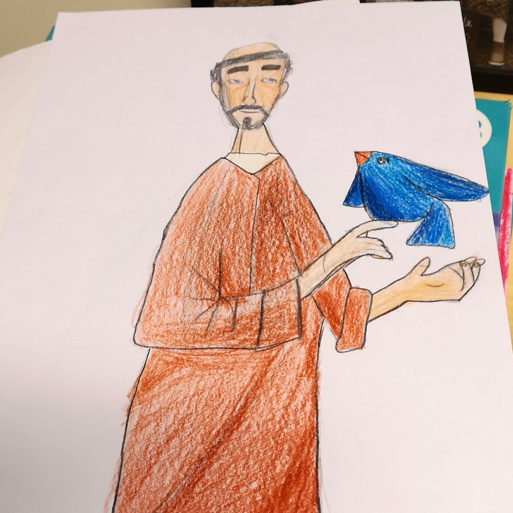Eg og elevane blir liksom ikkje heilt ferdige med Frans av Assisi. I dag skulle me lukka døra til temaet med ei lita oppsummering, men fleire insisterte på å få lov til å gjera seg heilt ferdige med teikningar, maleri, presentasjonar og filming, og slik iver klarte eg ikkje å stå i mot.