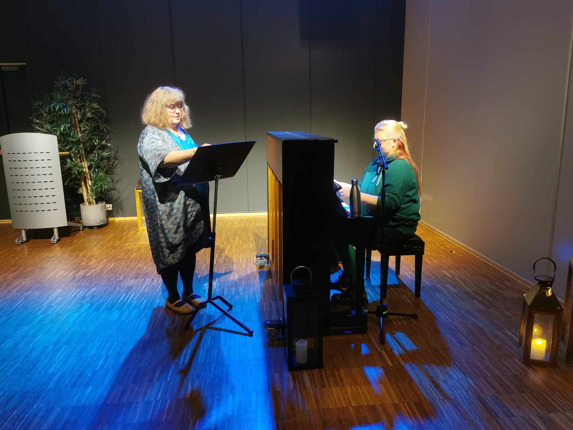 Etter å ha brukt mykje bloggkapasitet på bokproduksjon sist eg var flink til å bruka bloggen, så må eg nesten visa fram at bøkene er trykka, klare og i sal. Sist veke hadde eg boklansering i lag med Torhild på biblioteket. Det vart ei fin oppleving. Alle stolane i salen var opptekne og dei måtte bera inn fleire. Eg følte meg møtt med ein vegg av varme og entusiasme. Takk til dei som var med på å utgjera det gode publikumet, og takk til Torhild som det alltid er ein fryd å opptre saman med.