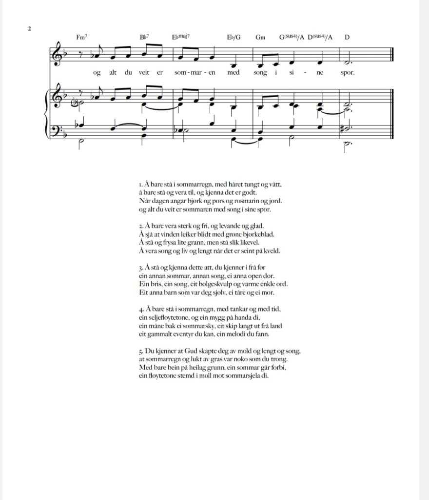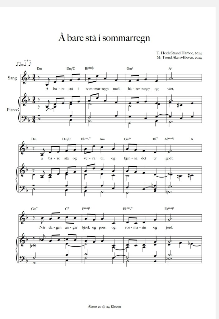 I går fekk eg ein nydeleg melodi frå Trond Akerø-Kleven. Han hadde laga melodi til teksten under som eg la ut for bare to dagar sidan. Lydfil fekk eg og. Eg er superimponert over desse generøse komponistane som let meg dela materialet deira. Trond gir meg lov til å dela både lydfil og noter og eg er så glad. Eg gler meg til å høyra dette framført av ein songar. Trond Akerø-Kleven er mannen bak melodien som vann salmekonkurransen til jubileet i Stavanger, så han kjem sikkert fleire til å bli nærare kjende med i samband med det.