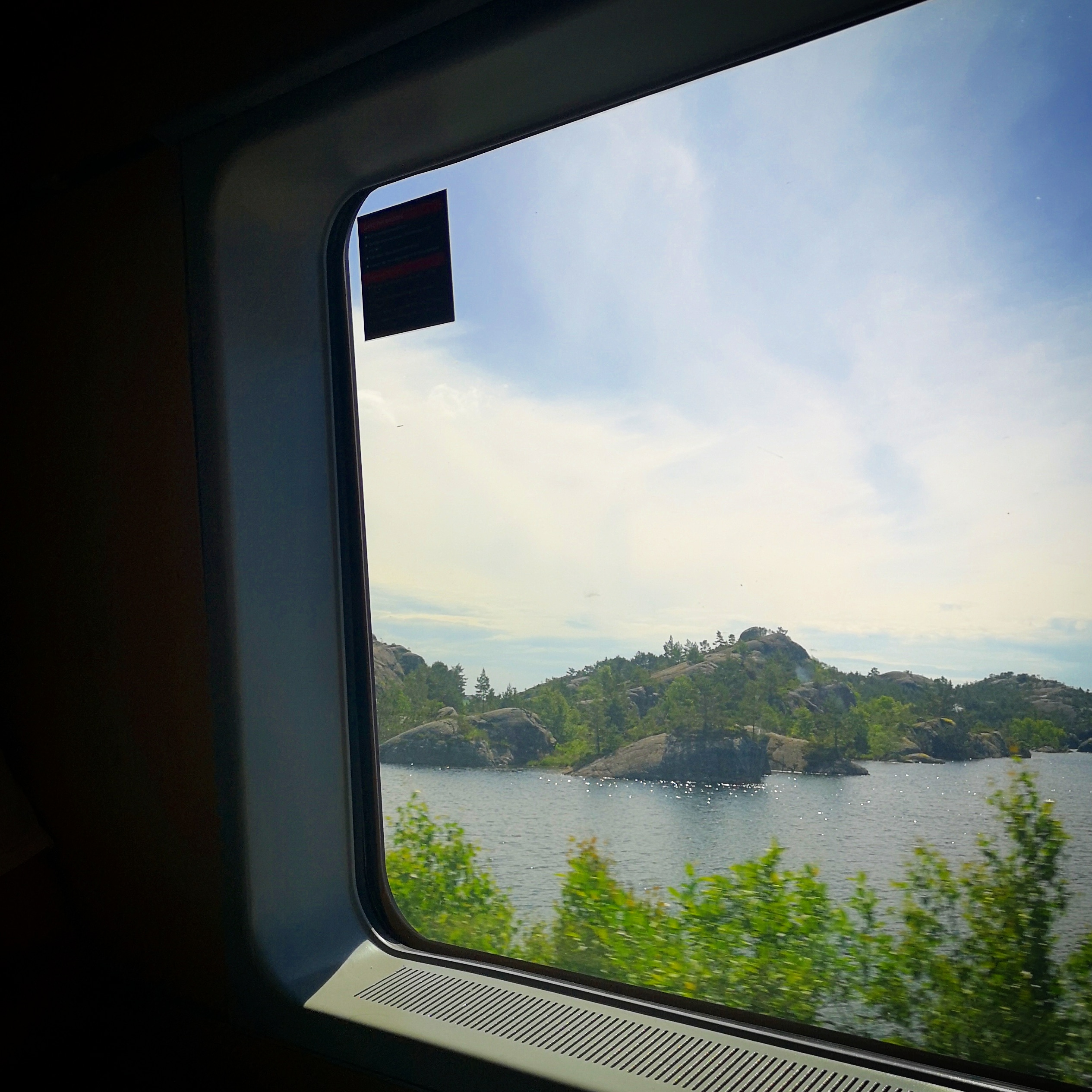 Nå sit eg på toget retning Kristiansand. Alltid godt å vera så langt. Det er sjeldan det ikkje er ein viss dramatikk rundt togreiser, og denne gongen var ikkje unntaket frå regelen. I går fekk eg beskjed om at det var buss for tog frå Kristiansand til Oslo, det var utan betydning for meg sidan eg skal til Kristiansand, men det stod at det kunne bli forsinkingar.