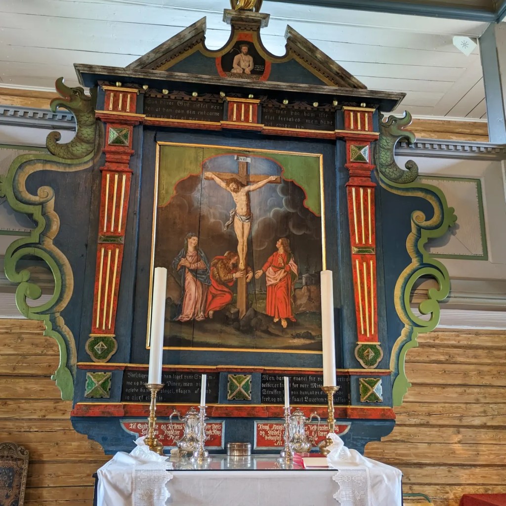Mannen som tronar over Jesus er kong Kristian Kvart. Han sende ut ei befaling om at det skulle vera bilete av han i alle kyrkjer…