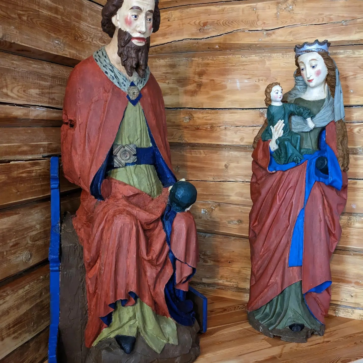 Guro hadde gjort ein avtale med presten om at me skulle få koma inn i kyrkja i Bø der dei skal feira 200-årsjubileum i år. Dei er i ferd med å leggja siste hand på restaureringsarbeidet før jubileet. Me fekk grundig og interessant guiding. Det var ei nydeleg gammal korskyrkje med fin altertavle og flotte treskulpturar frå 1000-talet.