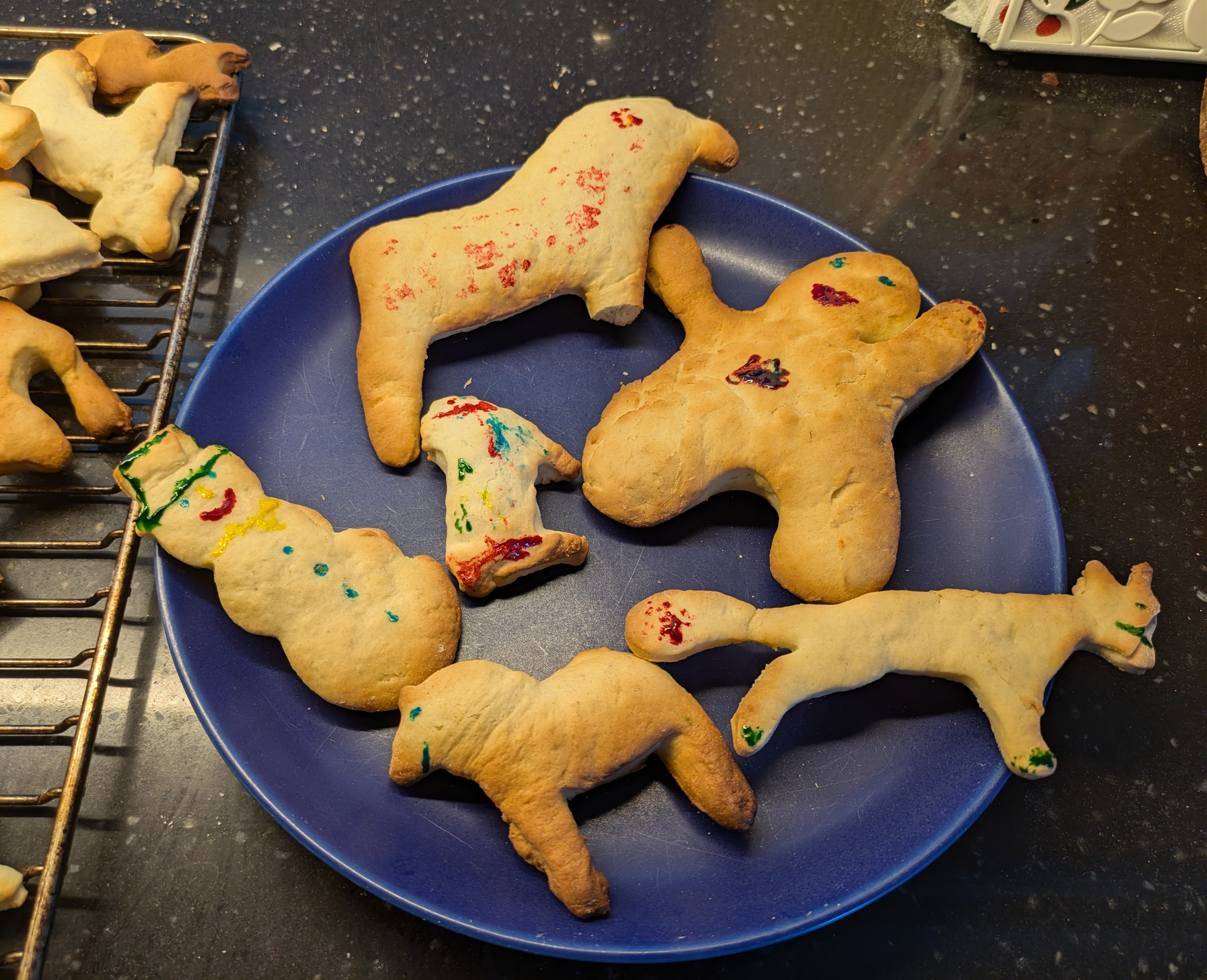 Desse malte kakemennene frå produksjonen vår i helga i lag med to små jenter, synest eg er eit greitt eksempel på overskrifta over. Verken steikinga, utforminga eller malinga har det minste anstrøk av å vera masseprodusert eller maskinlaga-. Figurane har eit litt rufsete preg, eit eller anna som får dei til å sjå ut som om dei er laga av barn, og det er jo nokså nær sanninga… I beste fall er det sjarmerande, i verste fall ikkje bra nok…