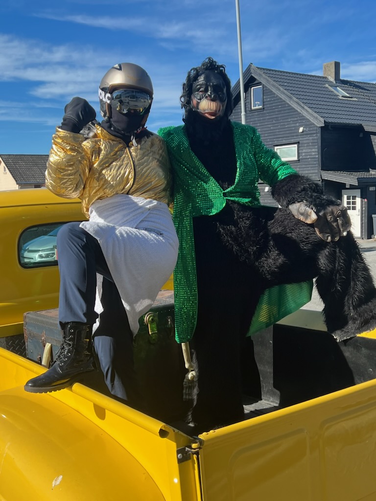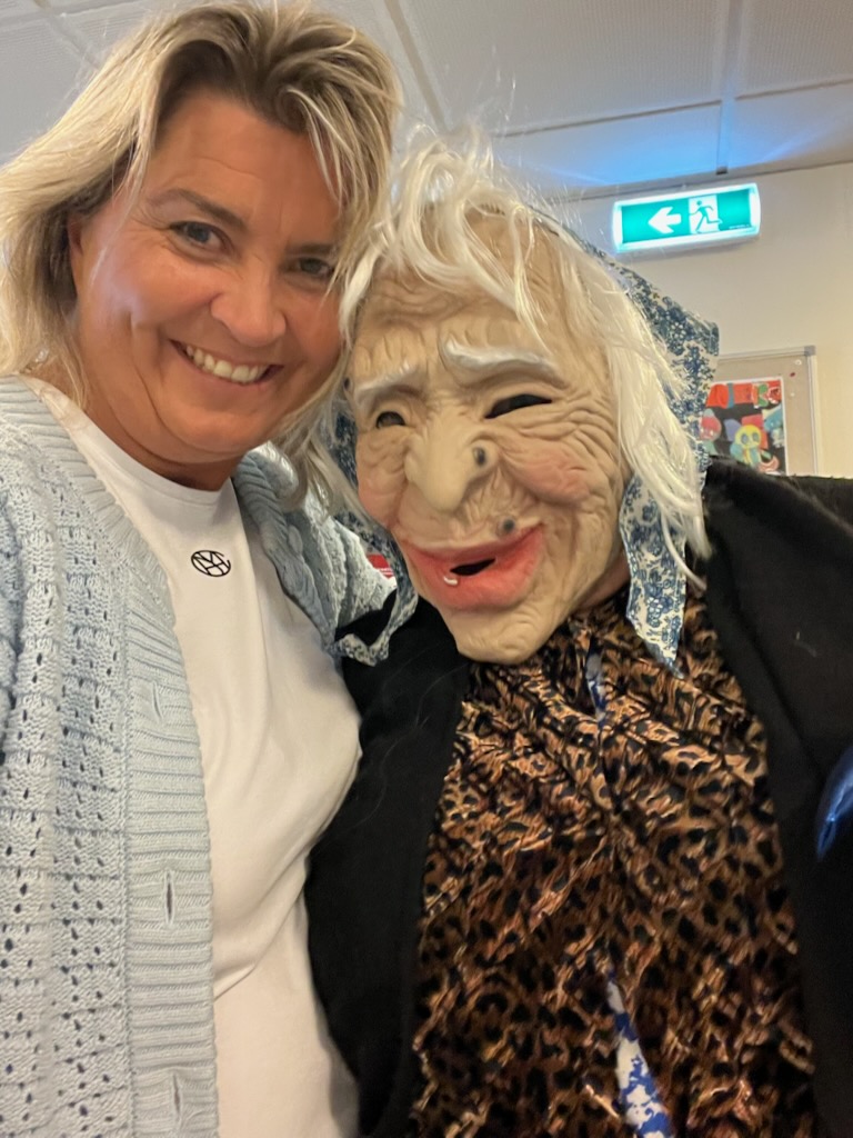 Mykje har eg fått vera med på å prøva ut, noko har me lagt vekk og noko har gått over av seg sjølv. Mest kvart einaste år har eg vore medansvarleg for ei stor forestilling, og det har vore veldig travelt og veldig kjekt. Bileta over er frå Maskoramafinalen tidlegare i dag. Mitt alter ego Tante Tusenfryd rauk tidleg ut av konkurransen, men i dag fekk ho lufta seg igjen. Dei to på det andre biletet er to av finalistene som opptrådte live for elevane i dag. Heile dette store prosjektet er styrt av min dyktige kollega Mari.