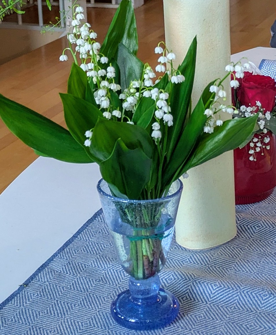 Far hadde vore i hagen og plukka liljekonvall til meg. Ein nydeleg gave til bryllaupsdagen, sidan brudebuketten min bestod av sjølvplukka liljekonvall. Eigentleg skulle eg hatt sjølvplukka syrinar i skarlagensraudt, fiolett og kvitt, men det var ein litt sein vår i 1985, så dei var ikkje utsprungne. Eg trur framleis det hadde vore veldig fint viss det hadde blitt ein syrinbukett, men liljekonvall var plan B. Dessverre var eg som ofte elles tidsoptimist den dagen, så då eg stod i bestemor sin hage i brudekjole og plukka liljekonvall, nærma vielsen seg med stormskritt. Brudgommen begynte så smått å få panikk, og foreslo at me fekk klara oss utan brudebukett.