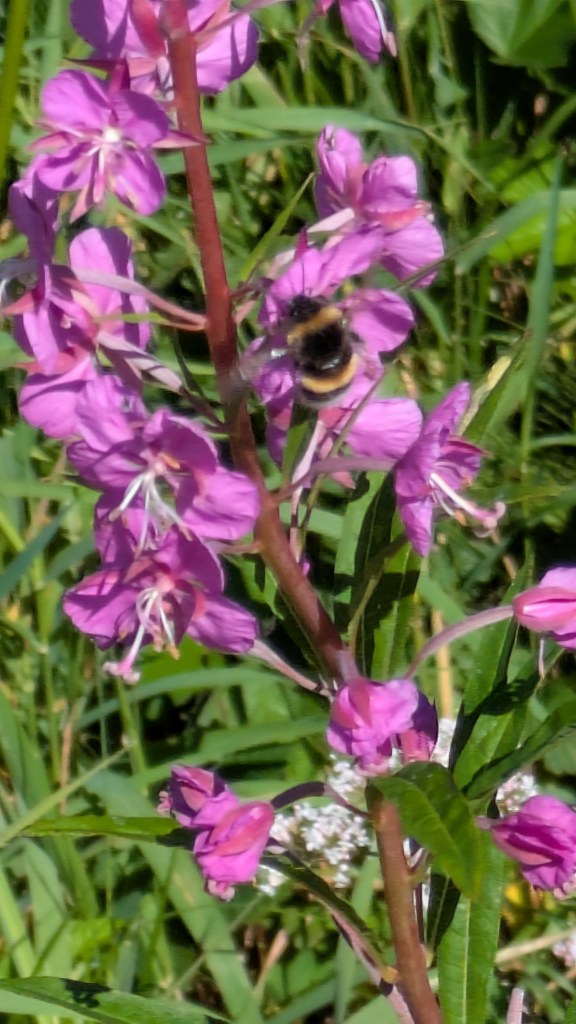 I Sandtangen veks markblomane tett langs stien,bog det myldra av humler og sommafuglar på jakt etter nektar. Eg måtte stansa og prøva å fotografera, men sommafuglar og humler har ein tendens til å stikka av når dei er ønska som fotomodellar.