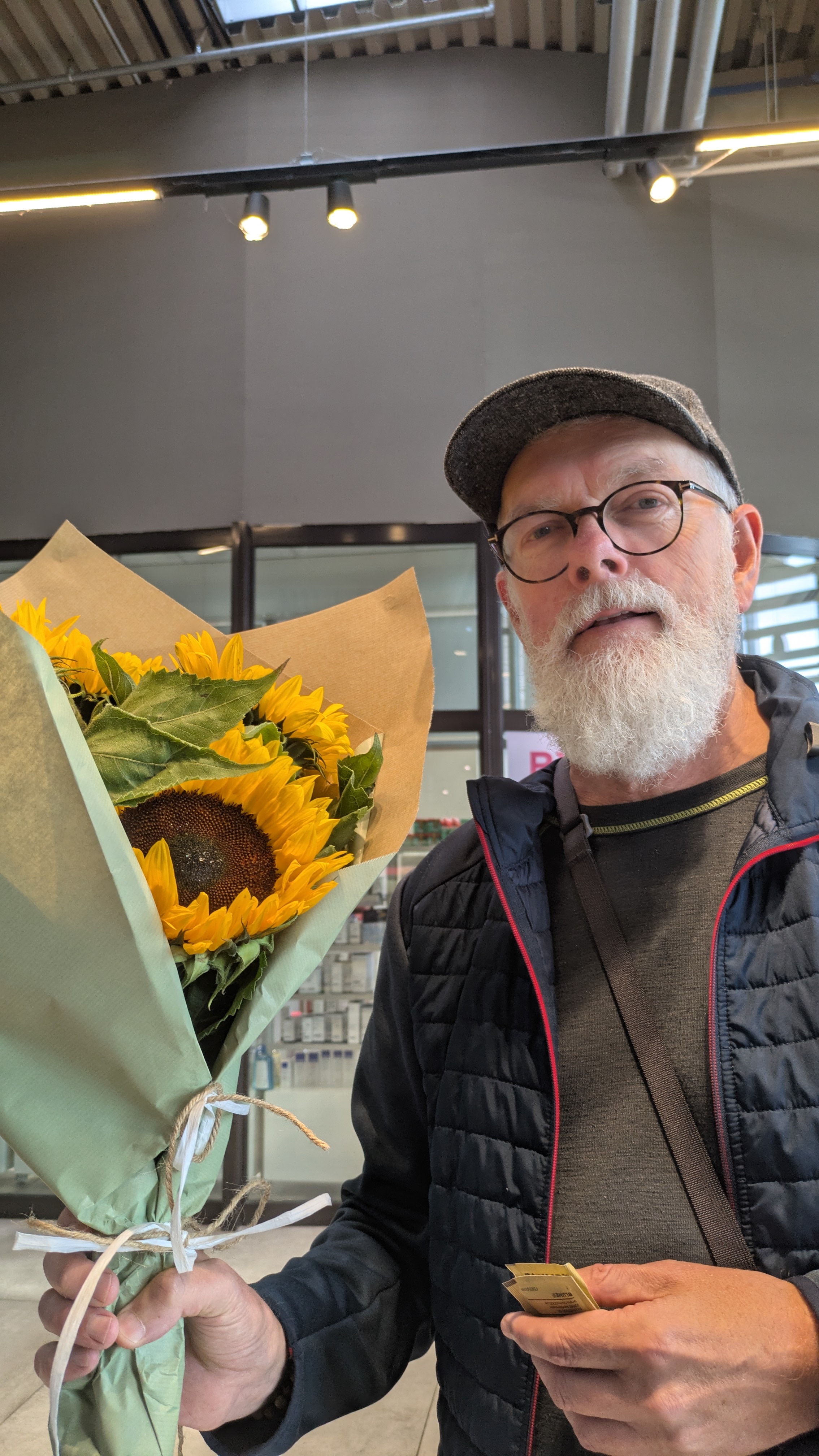 I dag har me kjørt vidare. Eg strikkar og passar på sjåføren mens me høyrer på lydbøker og podcastar. Nå har me vore og kjøpt solsikker, sjokolade og nøter som me skal ha med til Regina og Dirk som me skal møta i ettermiddag, og som me er inviterte til å overnatta hos. Regina er ei venninne av Leif frå då han budde eit år i Bonn på begynnelsen av syttitallet. På åttitallet møtte me dei fleire gonger, og ein sommar bytta me til og med hus og ferierte i kvarandre sine boligar.