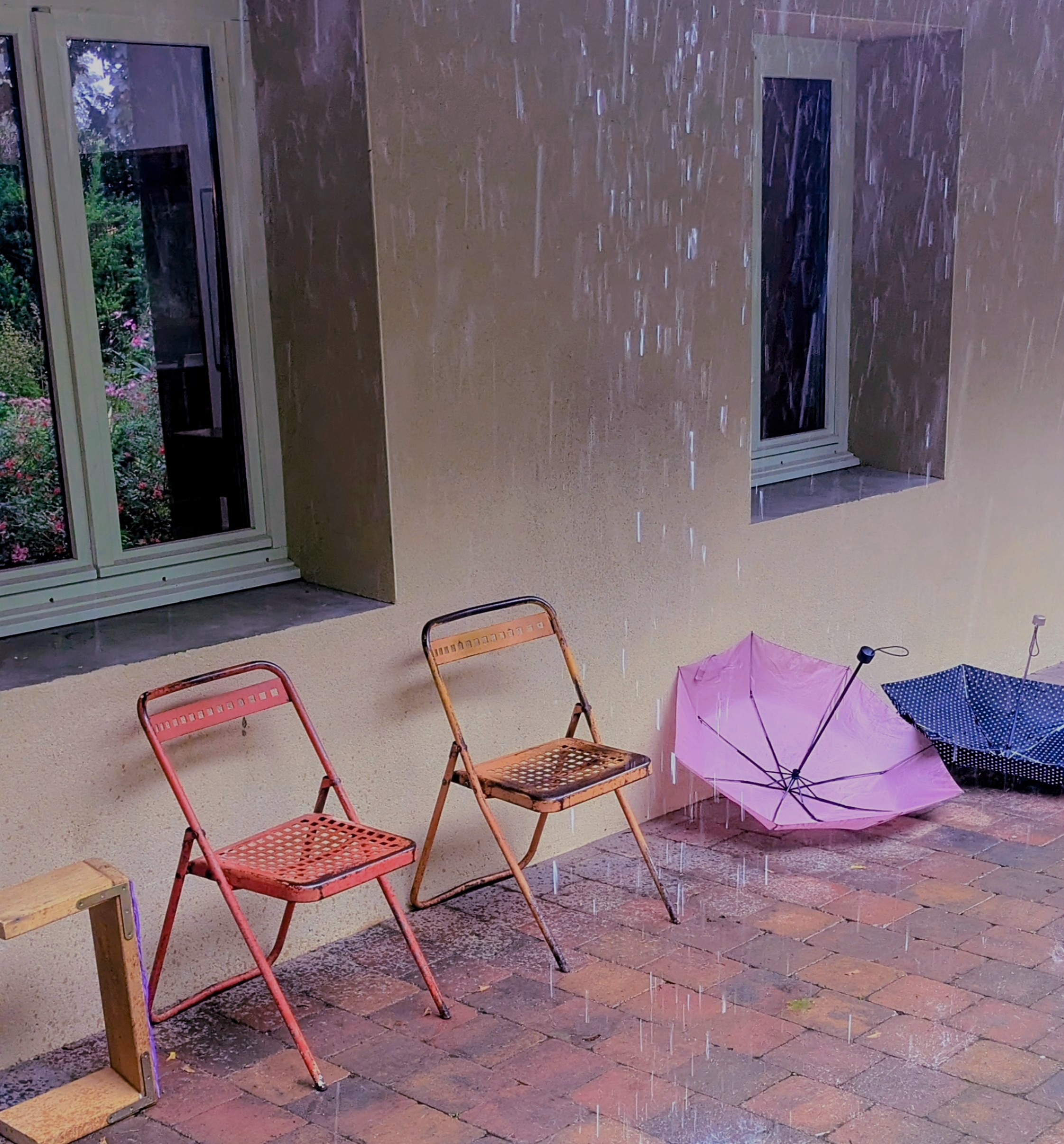 I dag regna det endå meir enn i går. Det var til og med flomvarsel på yr. Eg er lukkeleg over at me ikkje ligg i telt slik nokon her gjer, og veldig glad for å ha med ullgenser, strikkekofte og regntøy, i dag har eg hatt bruk for alle tre laga samtidig.